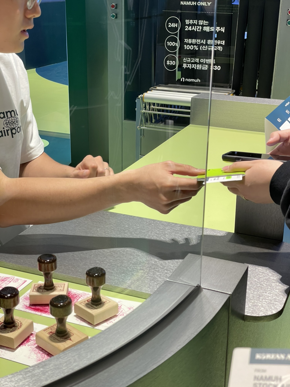 공간 전체에서 확인할 수 있는 '해외로 떠날 수 있는 공항' 컨셉에서, 보안검색대에서 투자를 하고 싶은 종목을 직접 선택하며, 지급된 시드머니를 자판기에 넣어 해외 투자 종목이 적힌 맥주를 뽑으며, 곳곳에서 지속적으로 알려주고 있는 '24'시간을 발견하며 경험할 수 있기 때문이다.