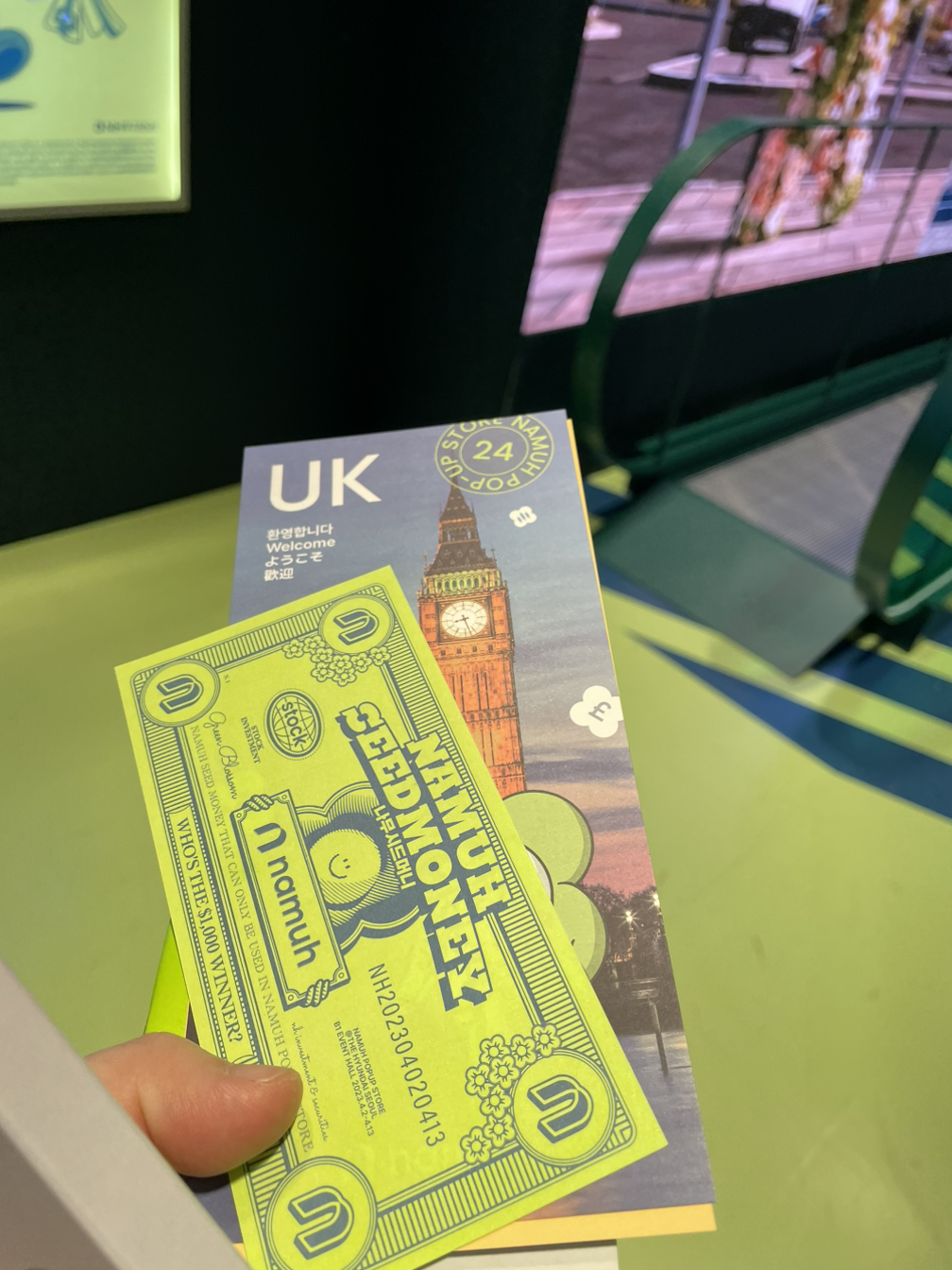 개인적으로 팝업에서 중요한 3요소는 좋은 고객 경험, 브랜드(서비스) 인지도, 바이럴을 위한 요소(차별화된 경험, 독특한 컨셉, 경품 등)라고 생각하는데 나무증권 팝업은 이 모든 게 완벽하게 조화를 이룬 팝업이라고 생각한다. 내내 재밌고 디테일에 감탄했으며 나무증권으로 해외 투자를 24시간 시간 상관없이 할 수 있다는 사실을 알았고 추천해 준 해외 종목들에 관심이 생겼다. 어렵게만 느꼈던 해외 주식이 훨씬 친숙하게 다가오기도 했다.