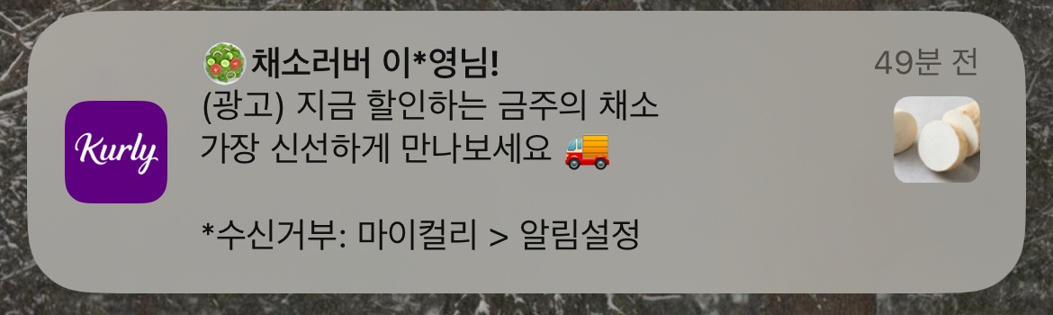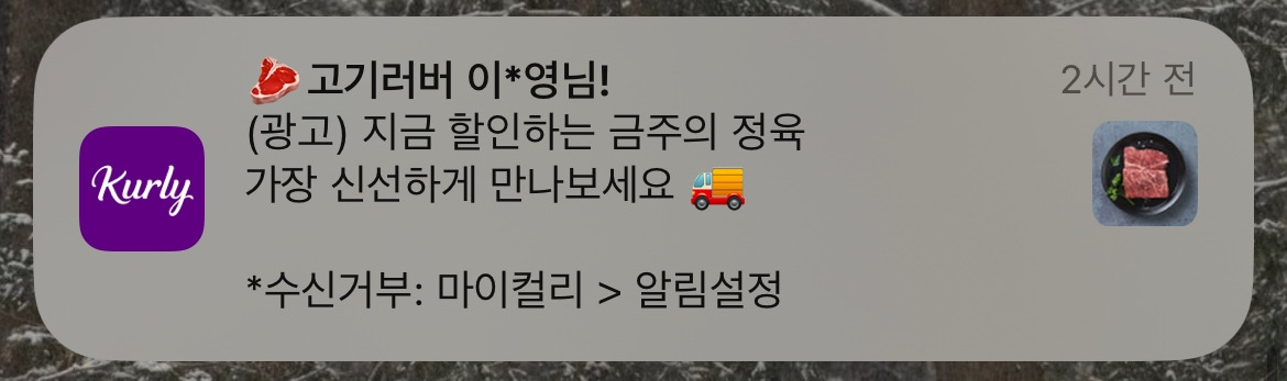 고기러버/채소러버로 앱 푸시를 보내보고, 반응이 있는 고객들을 따로 나눠 타게팅하려는 건 아닐까 생각이 드는 메시지였다.