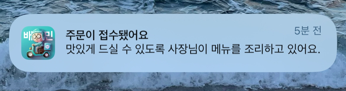 배민 푸시 문구가 조금 더 친절하게 바뀐 것 같다. '맛있게 드실 수 있도록 사장님이 메뉴를 조리하고 있어요.'라고 말해주니 아직 음식을 받지 않았지만 맛있을 것만 같고, 늦어도 정성을 쏟느라 그런 거겠거니 싶다. 배민이나 쿠팡이츠 등 플랫폼을 통한 비대면 거래를 하면서 핸드폰 뒤에 사람이 있다는 생각을 종종 잊고 살았는데, 이런 UX 덕에 사람이 만들고 있는 요리라는 점을 다시금 깨닫게 되었다.