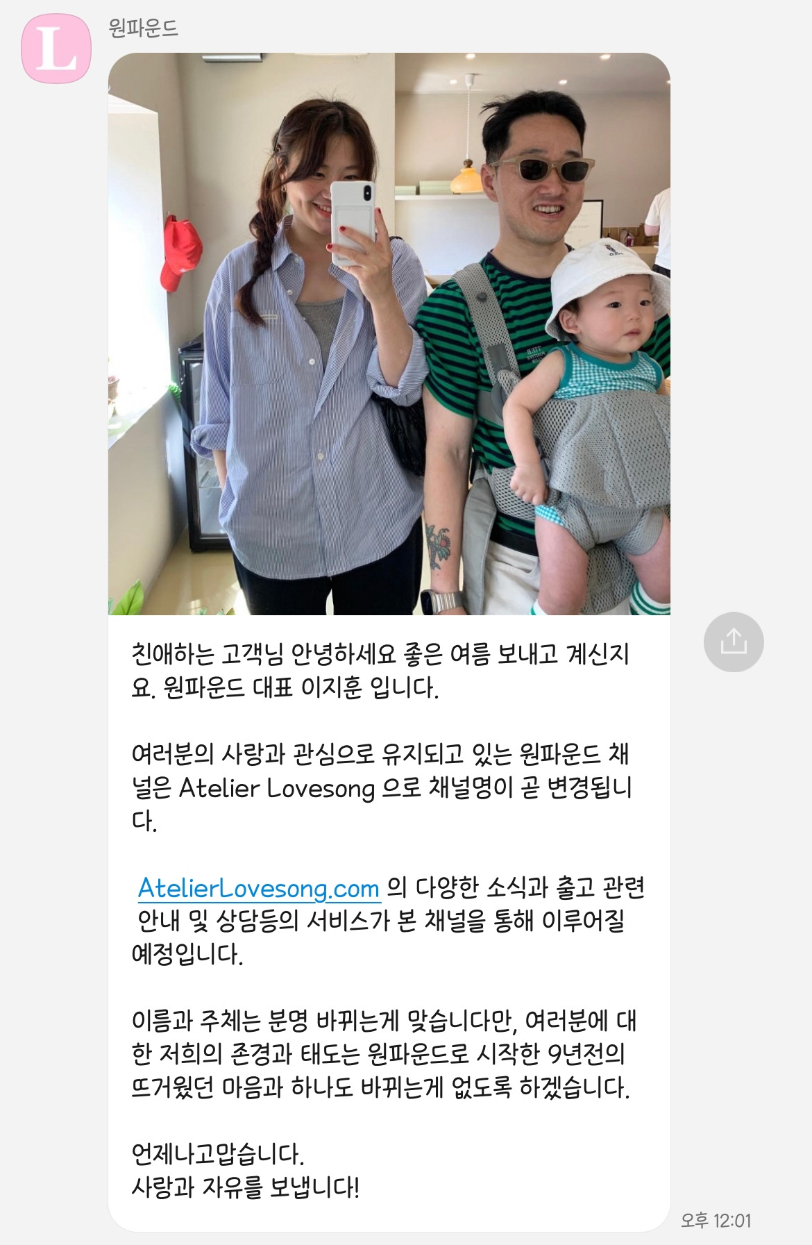 카카오톡 비즈니스 채널의 경우, 채널명을 변경할 때 기존의 모든 카톡 친추 친구들에게 변경에 대한 안내를 해야만 한다. 보통은 형식적인 안내를 하곤 하지만 원파운드는 이런 사소한 부분도 원파운드스럽게 안내했다. '좋은 여름 보내고 계신지'를 물으며 친근하게, '여러분의 사랑과 관심으로 유지되고 있는 원파운드 채널'이라고 말하며 고객에 대한 감사와 사랑을 말한다.