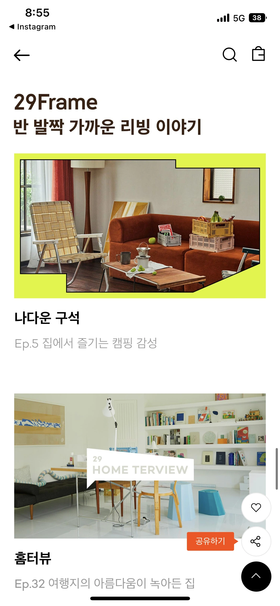 이 콘텐츠를 보다 보면 나의 집에 어떤 가구를, 소품을 놓고 싶은지까지 생각이 확장된다. 지금 내 방과 집은 충분히 내 취향으로 가득차 있는지 돌아보게 되고 내 취향으로 좀 더 채워넣고 싶은 생각도 든다. 그리고 그 생각의 끝점에 29cm home이 있다.