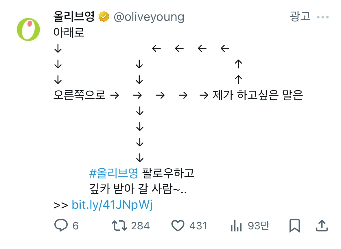 인스타든 X(구 트위터)든 광고가 넘쳐나면서 고객들은 웬만한 광고는 스킵하고 있다. 하지만 브랜드들 역시 고객들의 손끝을 잡아두기 위한 노력이 열심이다. 왼쪽부터 콰트, 내집스캔, 올리브영인데 일반 인스타그램 유저, 엑스 유저들이 올릴법한 소재로 광고를 만들어 메시지를 전하고 있다.
