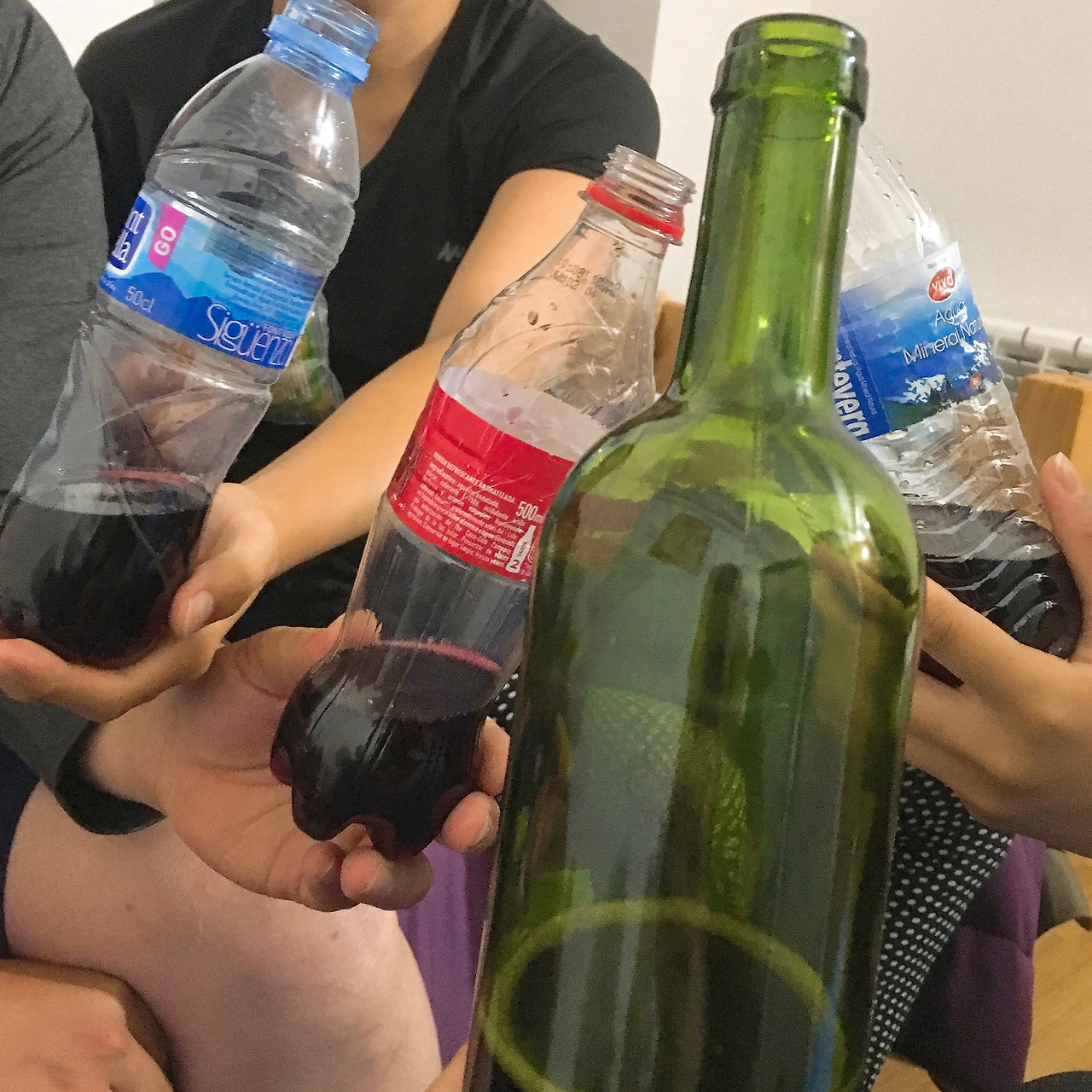레드 한 병을 사서 숙소로 룰루랄라 돌아왔는데 숙소에 잔이 따로 없다는 사실을 이윽고 깨달았다. 와인병으로 돌아가면서 마신다면 분명 흘리는 양도 상당할 테다. 방법이 필요했다. 맛있는 술 앞에선 기지도 빨리 발휘되었다. 내일 먹으려고 아껴둔 물을 한 입에, 아까 먹다 남은 콜라를 한 입에 털어내고 페트병을 비워 잔으로 만들었다. 각자의 잔에 누구 하나 서운하지 않게 정확한 양으로 배분하고 짠-을 했다.