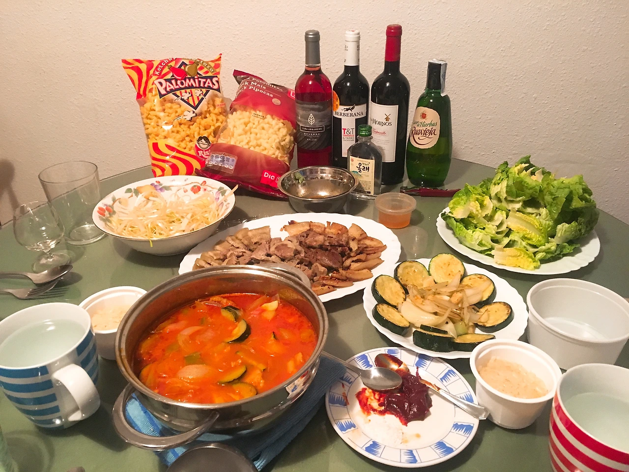 소주에 대한 예우로 우리는 고추장찌개와 삼겹살을 안주로 준비했다. 다들 한국에서부터 챙겨 온 고추장이나 재료를 아낌없이 찬조해 주었다. 그렇게 푸짐한 한 상이 완성됐다. 알베르게였다면 가스레인지 화구를 넉넉하게 사용할 수 없어서, 혹시라도 다른 사람들이 고추장찌개 냄새에 민감할 수 있어서 못했겠지만 여긴 에어비앤비라서 가능했다. 처음에는 '순례길에서 에어비앤비?'라고 생각했지만 전체 일정 중에 이렇게 하루 이틀은 분명 할만한 가치가 있었다.