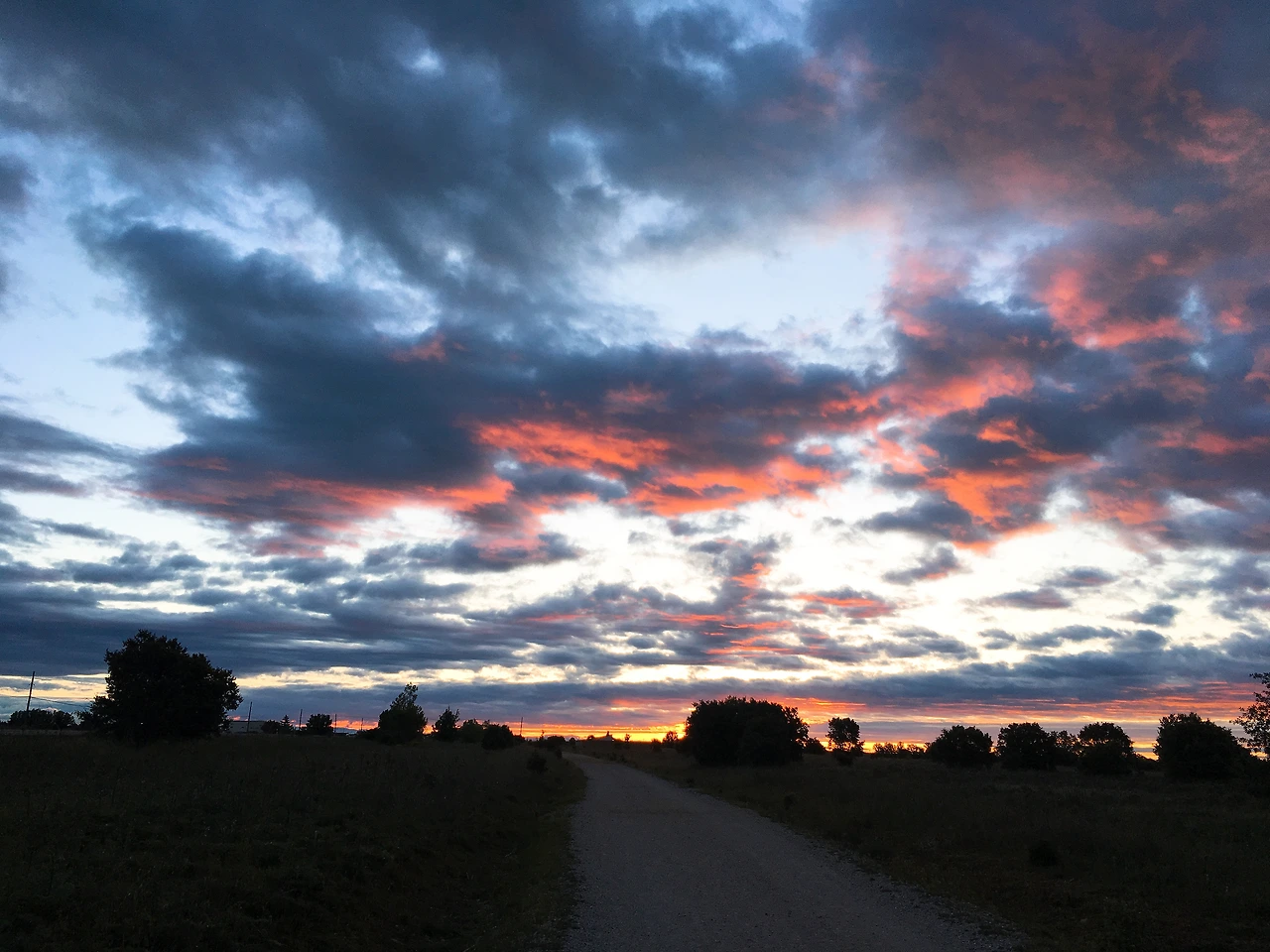 새벽 6시가 가까워진 시간, 저기 땅과 땅이 마주한 곳에서 짙게 깔린 구름 사이로 정말 빛이 새어 나오고 있었다. 구름이 무겁게 내려앉은 탓인지 하늘이 층층으로 갈라져 빨갛고, 파랗고, 노랗게 보였다. 우리는 조용히 멈춰 서서 멍하게 하늘을 바라보다가, 카메라를 들어 찍어보다가, 또 이 장엄한 광경이 카메라에는 담기지 않아 다시 또 하늘을 바라보았다가 했다. 이걸 보기 위해 오늘 고생하며 걸어온 거구나 싶었다. 지금까지 살면서 바다에서 해가 뜨는 건 종종 봤어도 땅이 양옆으로 길게 늘어진 지평선에서 떠오르는 해를 보는 건 처음이었다. 하늘은 시시각각 다른 얼굴을 했다. 그 초와 분이 아까워 우리는 눈도 떼지 않고 하늘만 봤다.