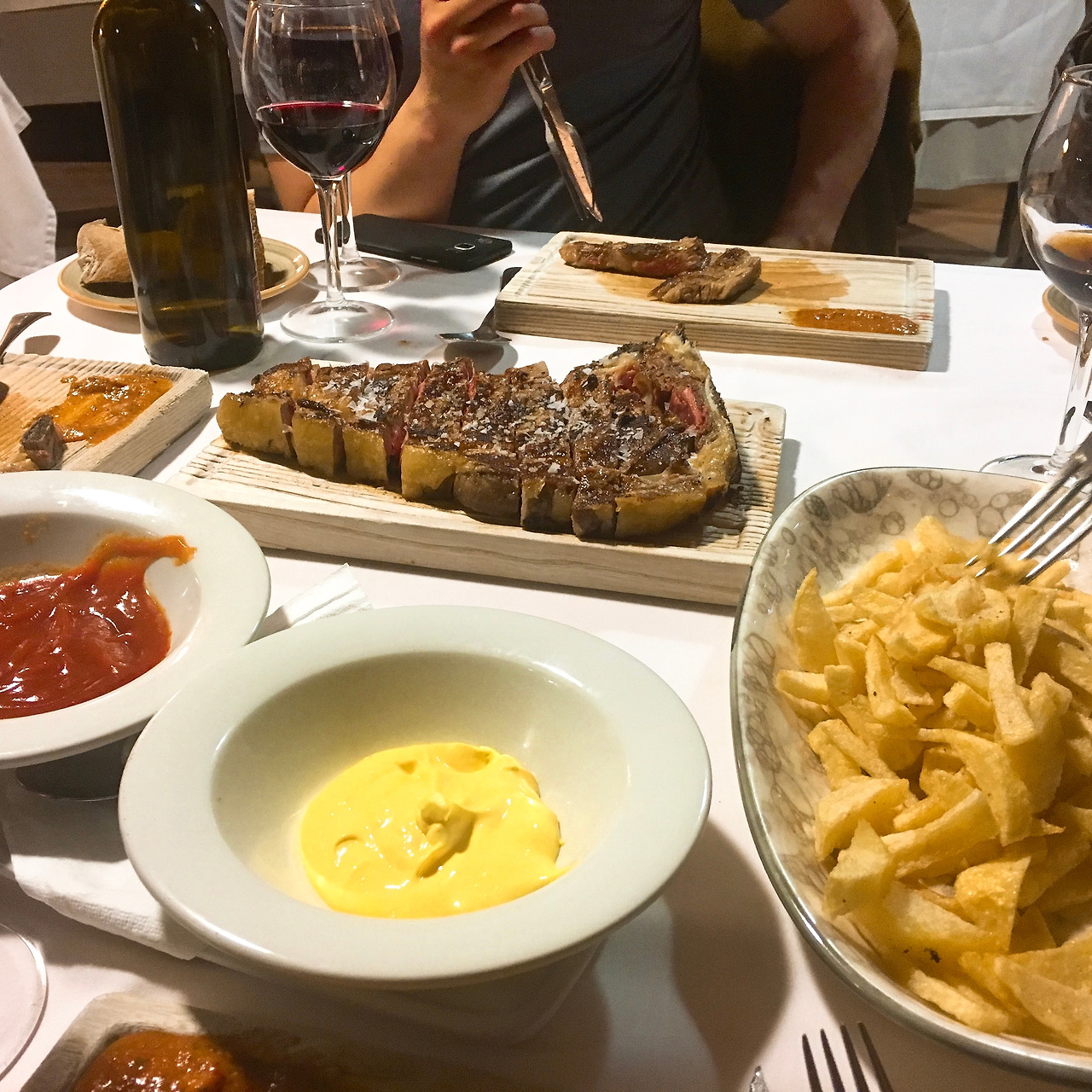 과연 듣던 대로 저녁은 훌륭했다. 육중한 무게의 고기와 파스타, 디저트, 무제한 와인이 오늘의 메뉴(메뉴 델 디아)로 제공되는 곳이었다. 식당에도 사람들이 진짜 끊임없이 들어오고 있었다. 꼭 이곳에서 숙박을 하지 않더라도 저녁을 먹으러 오는 사람도 있다고 했다. 오늘이 28일 차지만 여전히 어떻게 파스타가 메인 요리가 아닌, 전식인지 의문이 든다. 순례길 초기에는 미처 다 먹지 못했는데 이제는 디저트까지 무난하게 먹을 정도로 위장이 커졌다. 돌이켜 보건대 지금 내가 음식을 먹는 양이 지금까지 내 인생 중 가장 많다. 성장기인 고등학생 때도 이만큼을 매일 먹어본 적 없다. 음식도, 술도 지금이 황금기다.
