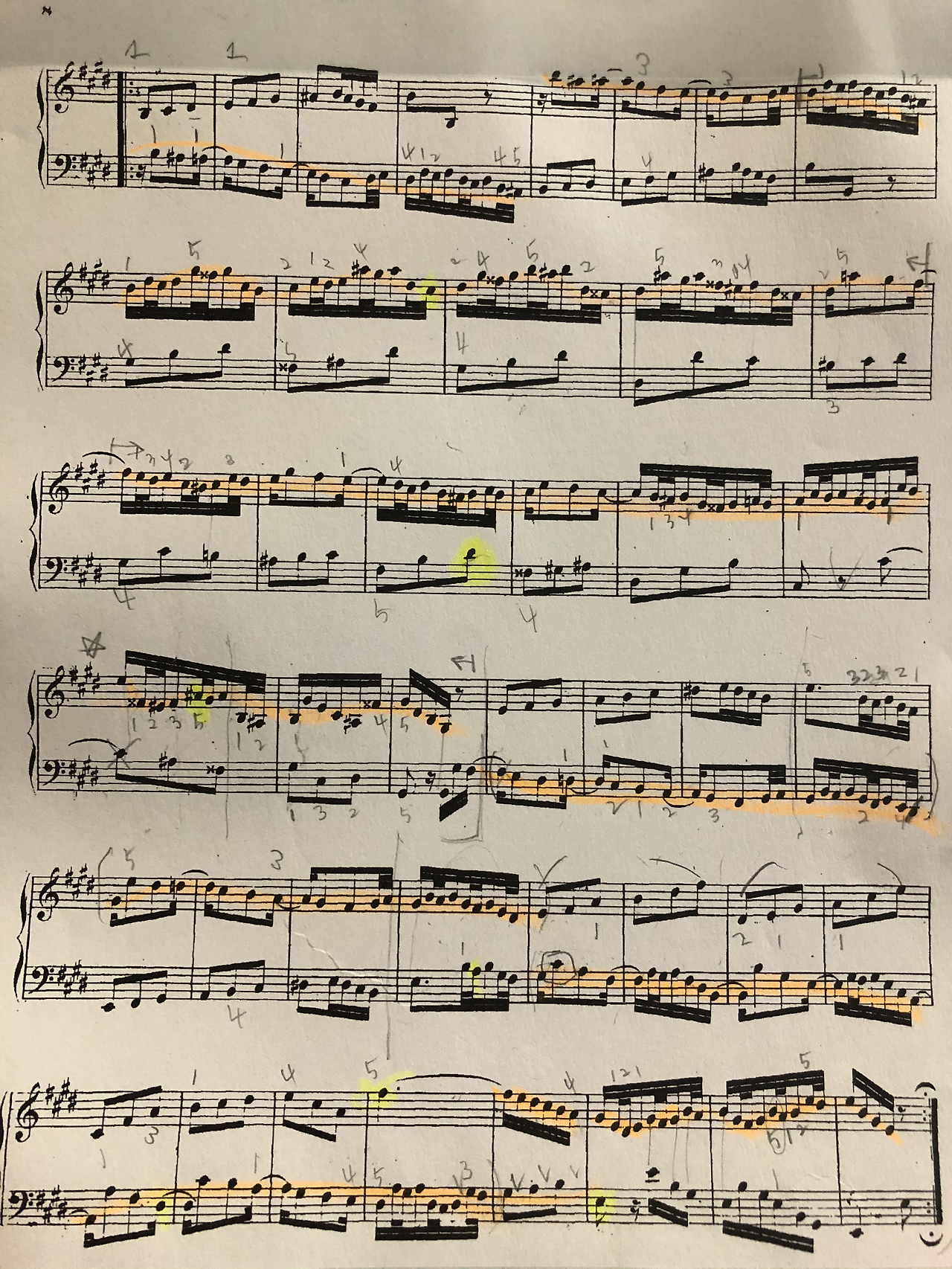 즉, 정리하자면 왼손과 오른손을 넘나드는 주선율, 상대적으로 힘이 약한 왼손의 약진, 익숙하지 않는 손가락 번호, 그 와중에 음과 음 사이를 떼어줘야 하는 논레가토, 수많은 미스터치, 의욕이 빚어낸 갑작스런 포르티시모가 범벅된 채로 바흐도 뭐도 아닌 음들을 만들어내고 있었던거다. 누가 들었으면 현대 음악 작곡가냐고 물어봤을거다.