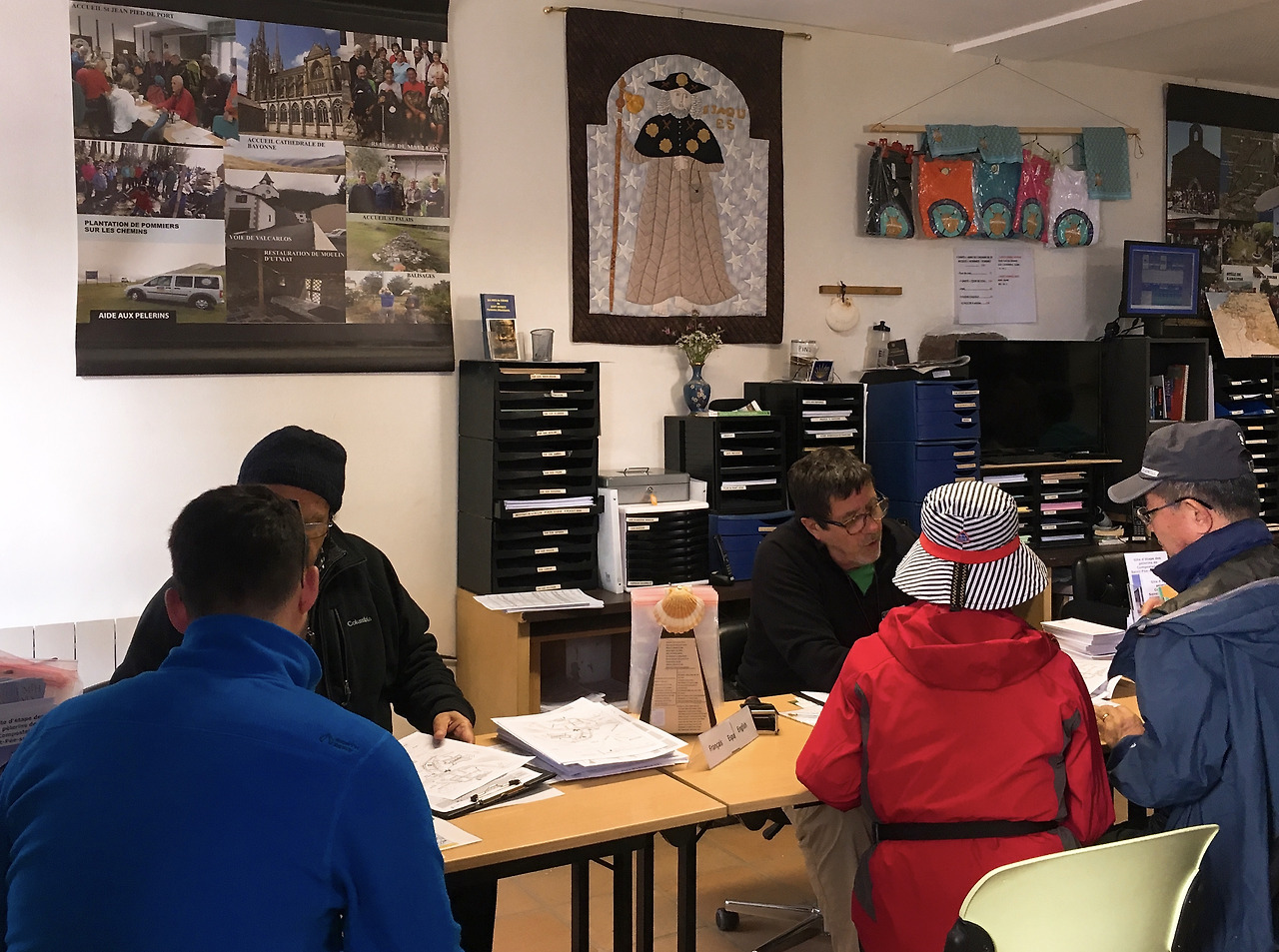 * 출발 전 순례자들은 사무소에서 순례자 여권(크레덴시알)을 발급받는다. 크레덴시알이 있어야 순례자 전용 숙소에 머물 수 있고, 성당 등의 입장료가 감면되기도 한다. 또한 방문한 숙소, 바(바르), 성당 등의 스탬프도 찍을 수 있다.