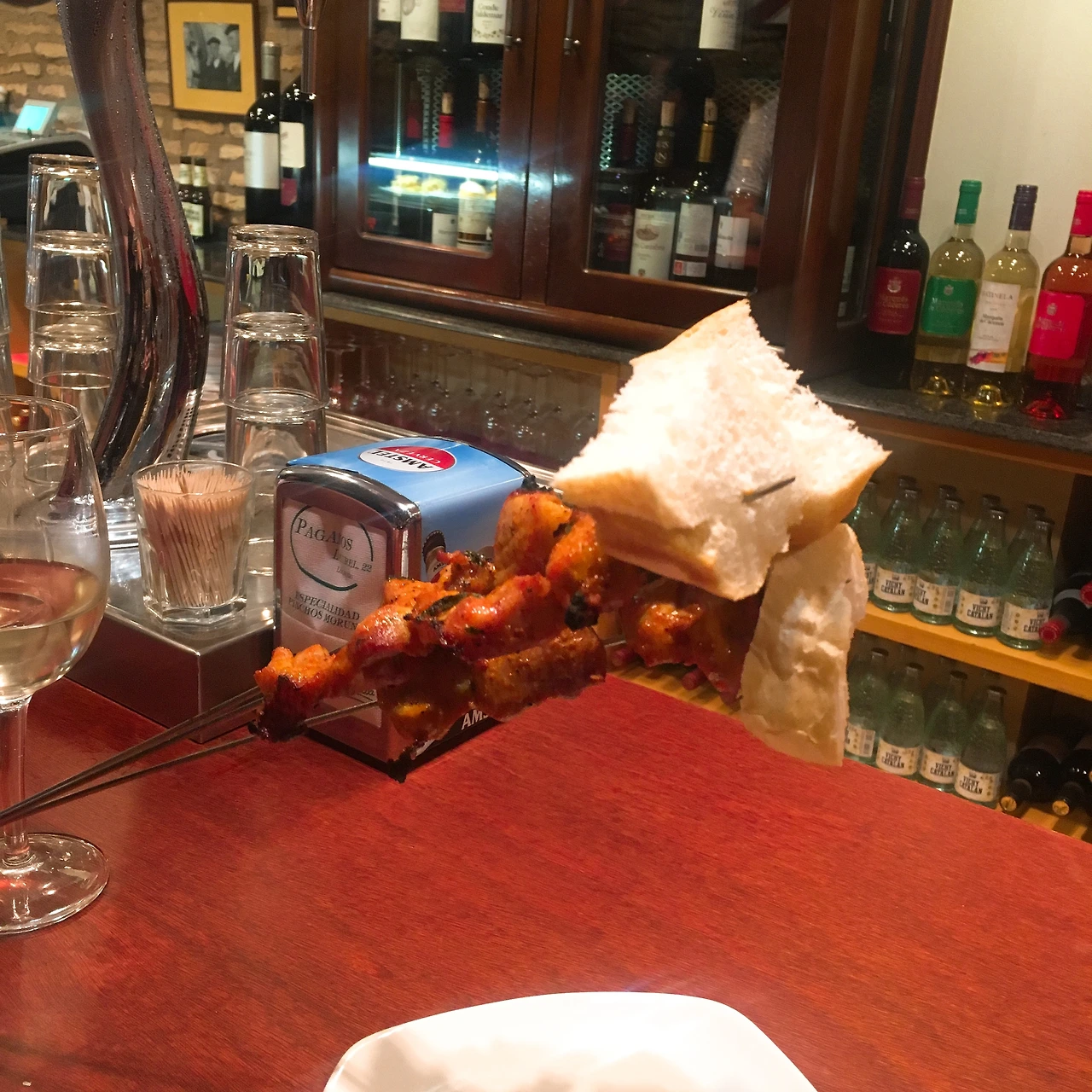 Bar angle에서는 모두가 양송이 타파스를 먹고 있었다. 글라스 와인도 함께 파는데 메뉴가 생각보다 단촐해서 선택이 오히려 더 쉬웠다. 가게 안에는 사람이 정말 많았다. 가게 안에도, 밖에도, 가게 옆에도 모두가 양송이 타파스를 기다리고 있었다.