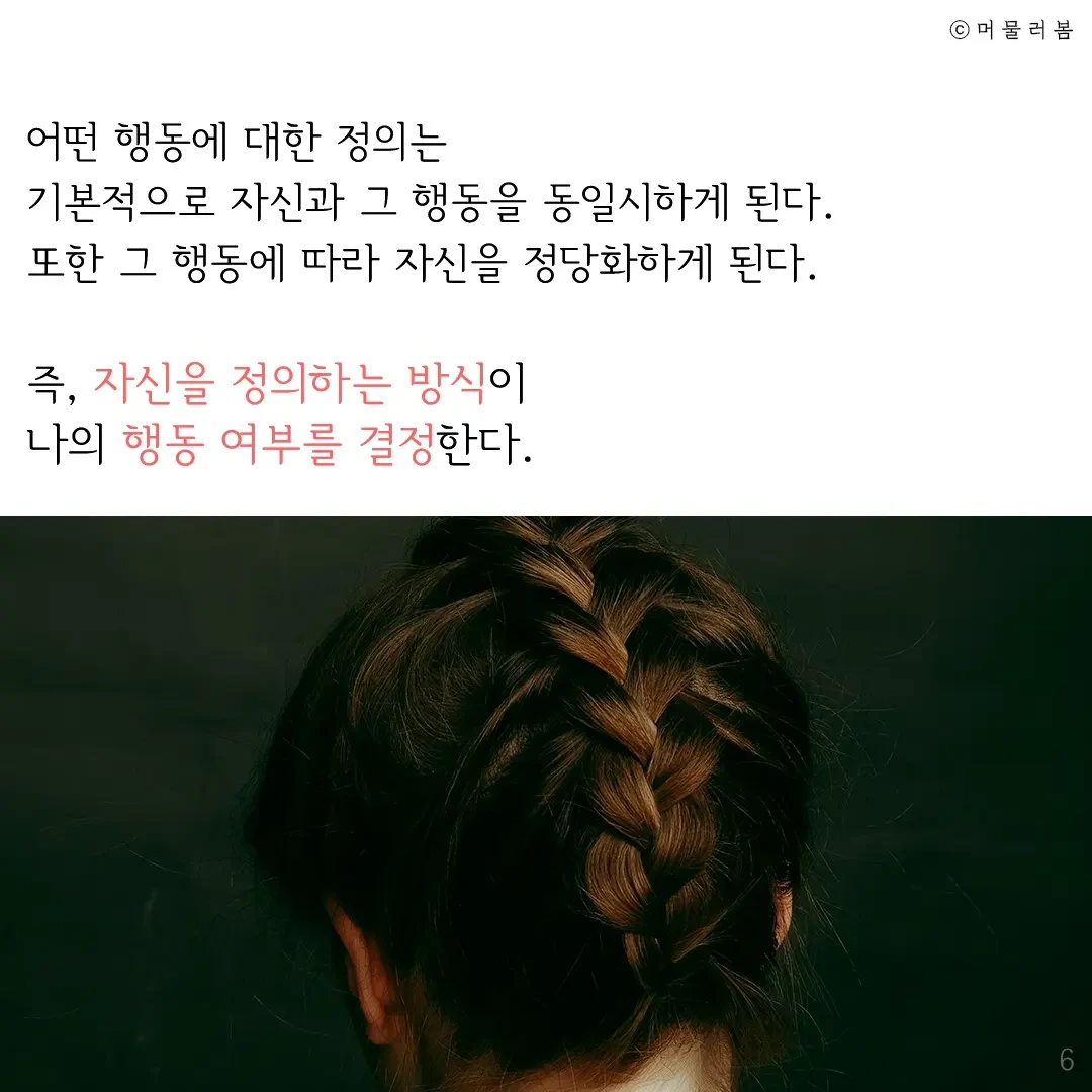 즉, 자신을 정의하는 방식이 나의 행동 여부를 결정한다.