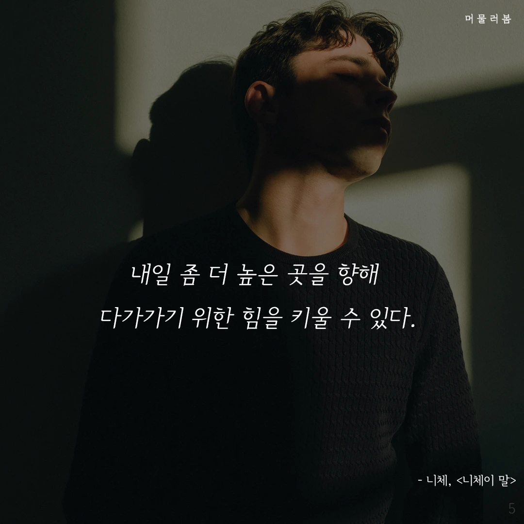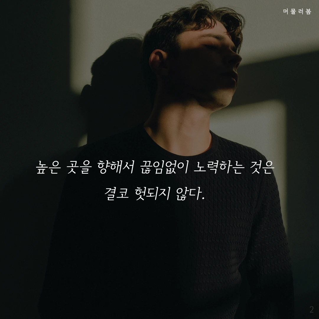 높은 곳을 향해서 끊임없이 노력하는 것은 결코 헛되지 않다. 비록 지금은 헛된 장난처럼 보일지도 모르지만 조금씩 정상을 향해 나아가고 있는 것만은 분명하다. 오늘 그 정상은 아직 먼 곳에 있겠지만, 내일 좀 더 높은 곳을 향해 다가가기 위한 힘을 키울 수 있다.