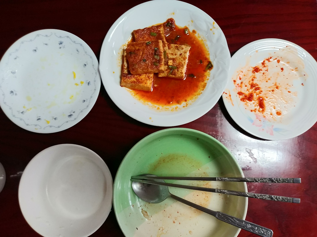 제51번째 생일상은 이렇게 깨끗하게 비워졌어요. 비록 두부 졸임이 조금 남았지만 그건 제 추억의 몫으로 조금 남겨두었습니다. 전혀 화려하지 않았습니다. 그러나 정성스러웠고, 저의 50년 삶의 흔적들이 곳곳에 담아져 있었습니다. 음식을 먹는 내내 저는 지난 세월을 생각했습니다. 51번째 생일상, 너무 감사하고 고마웠습니다.