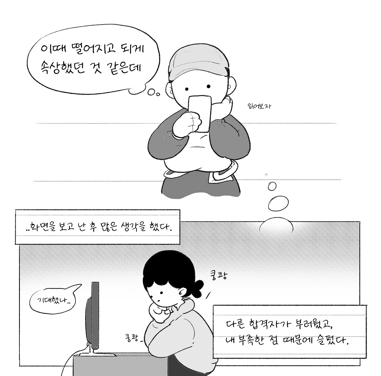 지금은 취업을 원하고 그때는 대외활동을 원했지만 합격과 불합격 사이에 서있는 게 꼭 비슷해 보여요. 나이를 먹으면 더 현명해지고 더 지혜로워지는 줄로만 알았는데 과거의 제게 위로를 받기도 하네요.