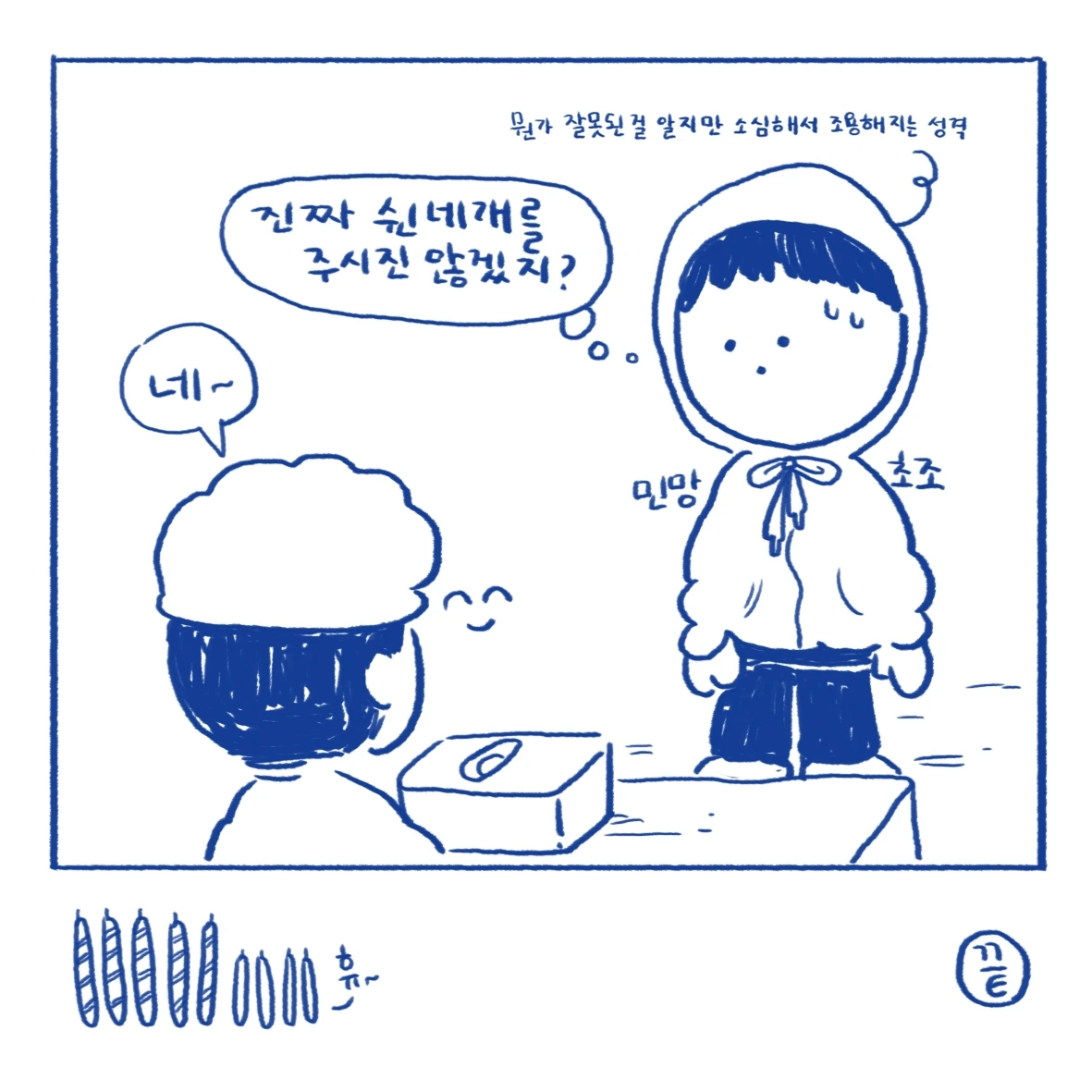 오늘도 한고비 넘겼지만 다음에 또 초를 받을 때 어떻게 말해야 할지 모르겠어요..