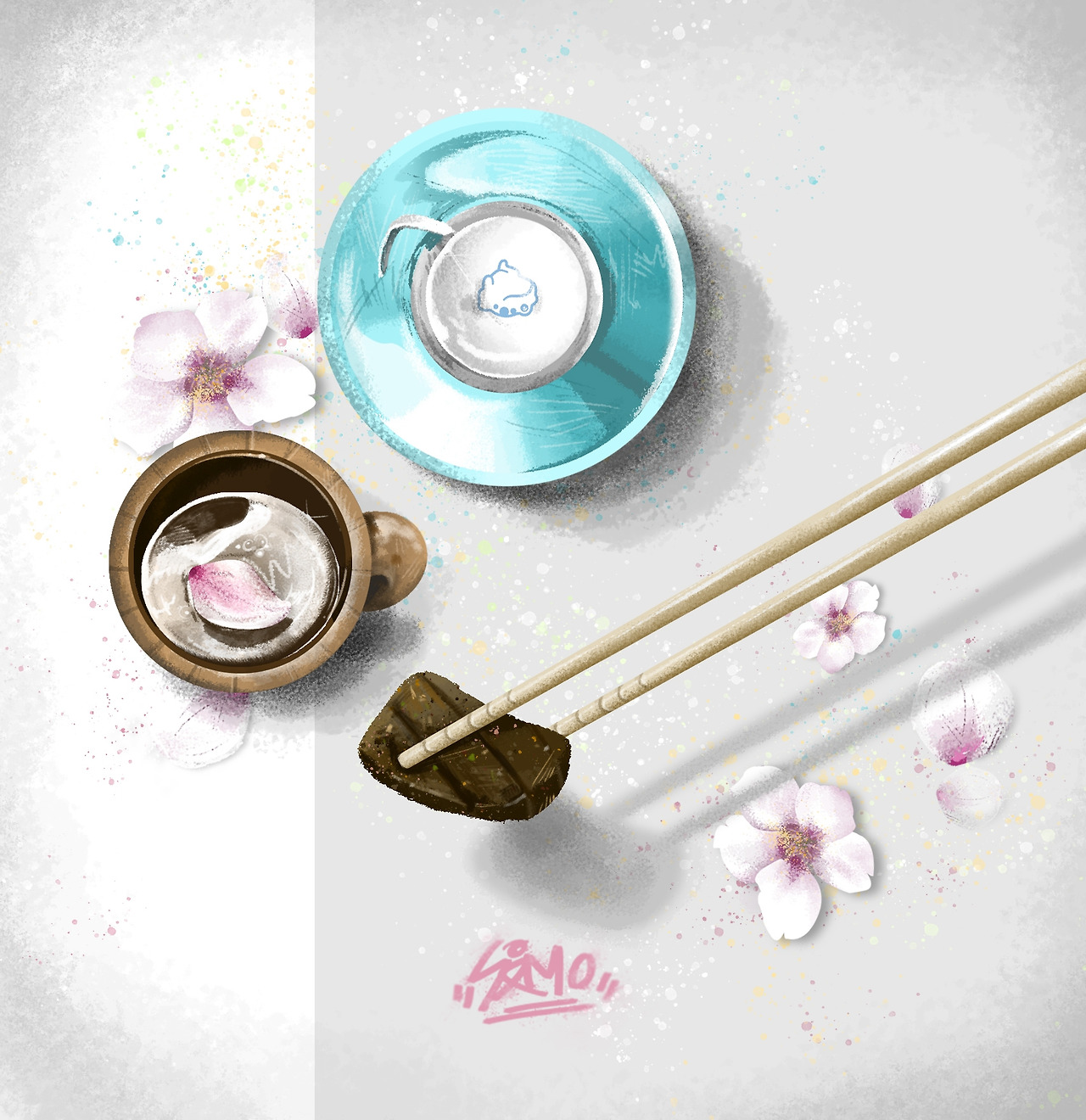 가방을 깔고 앉은 다음 가져온 것들을 난간 위에 펼쳐놓기 시작했다. 먼저 손수건을 잘 깔아놓고 소주병과 잔을 올렸다. 아직 차가운 소주병에 하얀 서리가 끼어있었다. 도시락통에 눌려있던 떡갈비와 밥에게도 숨통을 트여주었다. 작은 등산을 하고 왔으니 이것도 ‘하산 주'다 하며 소주 뚜껑을 땄다. 마침 불어오는 바람에 떨어진 벚꽃 잎이 보였다. 챙겨온 잔에 꽃잎을 넣고 소주를 따랐다. 적당히 선선한 날씨와 함께 하는 봄 술은 이루 말할 것 없이 낭만적이다. ‘춘주(春酒)’가 술 중에 술, 최상의 술이라는 어느 글이 떠올랐다. 소주를 한 모금 삼킨 후 짭조름한 떡갈비를 입에 넣었다. 은은한 숯불 향이 나면서 달짝지근한 간장소스의 맛이 일품이었다. 애정하는 도시락통에 담아 산을 넘고 호수를 지나온 떡갈비이니, 담양에서 먹는 맛 부럽지 않았다. 짠맛을 중화시키기 위해 쌀밥을 조금 떠서 같이 씹어본다. 역시 고기반찬에는 밥이라며 순식간에 식사를 마쳤다. 취기에 헤실헤실 웃고는 반 정도 줄어든 소주병 뚜껑을 닫고 다시 짐을 챙겼다.