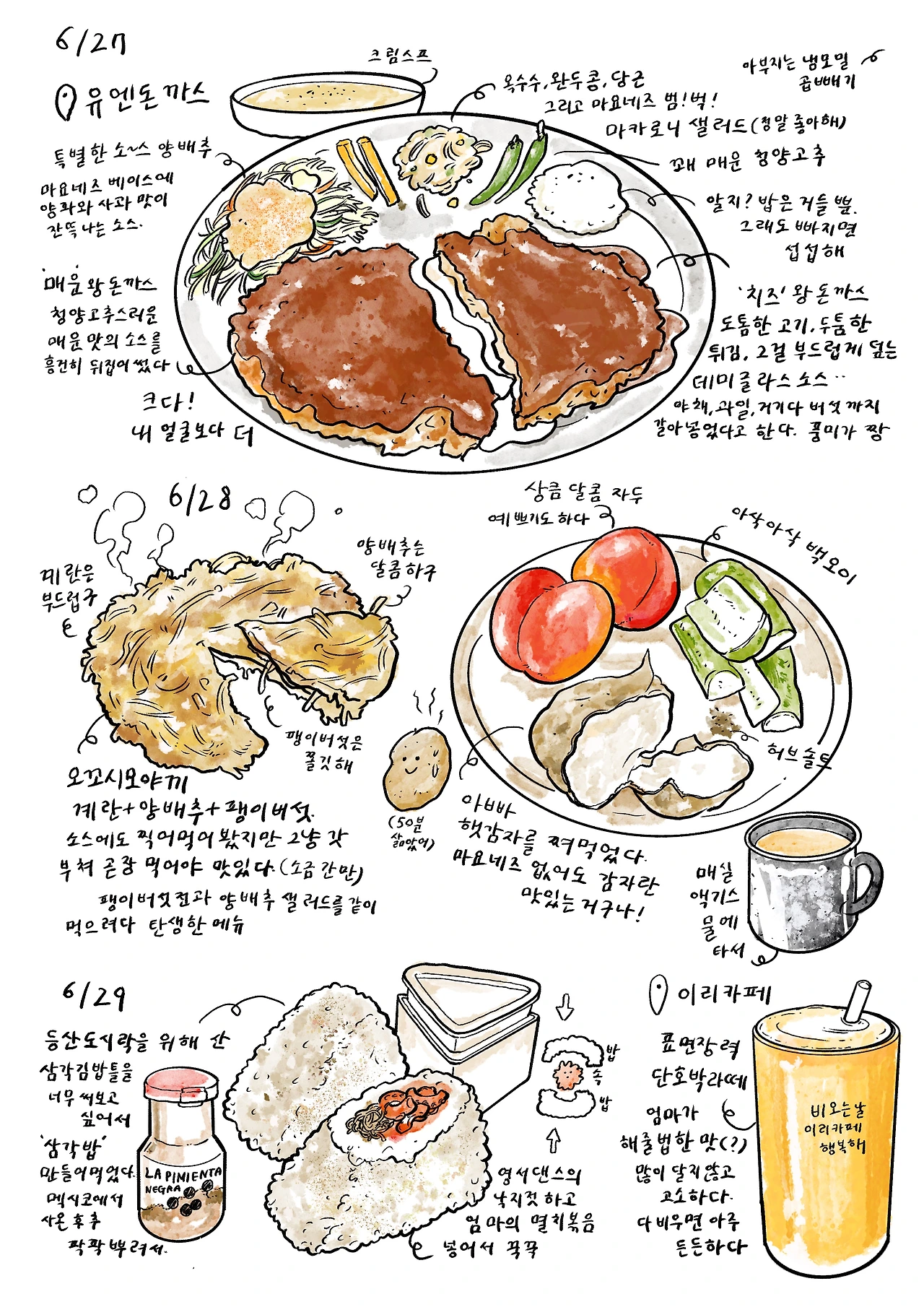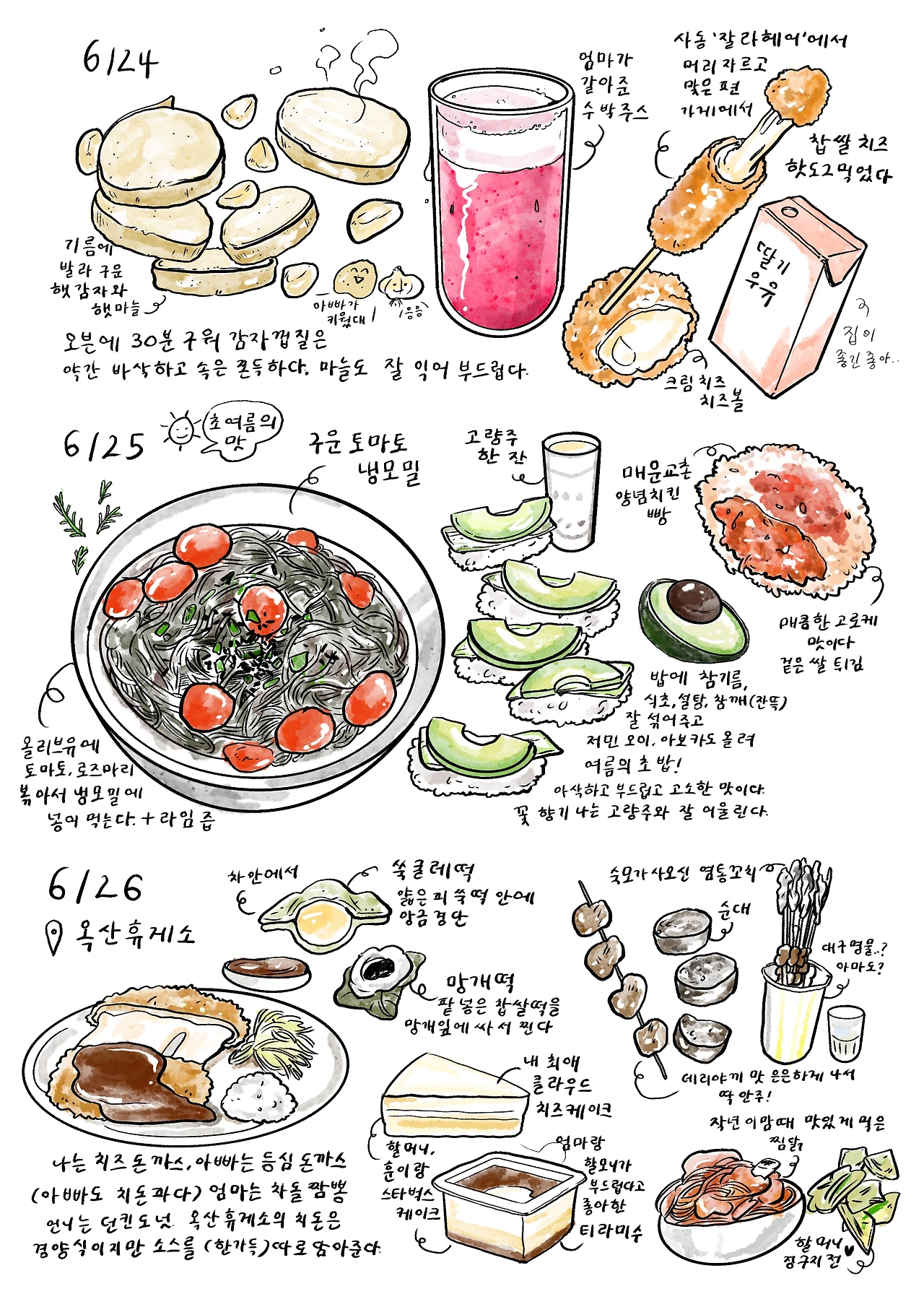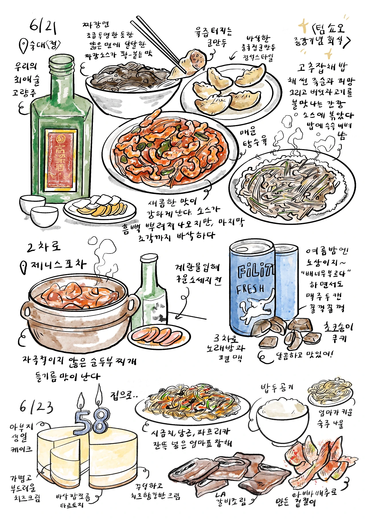 매운 탕수육, 고량주, LA갈비, 냉모밀, 돈까스, 감자