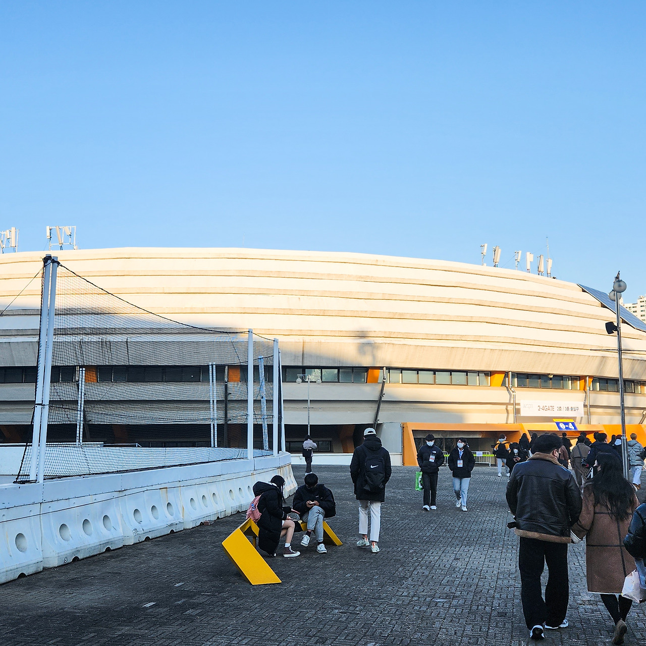 그로부터 44년이 흘렀다. 올림픽을 겪지 않은 사람이 더 많은 시대가 되었다. 주변에는 건물이 빼곡하게 들어섰다. 건너편 주경기장이 이목을 끌기에 이 건물은 눈에 잘 띄지 않는다. 묘목에 불과하던 가로수들이 덩치 큰 나무가 되어 체육관을 에워싸기에 더더욱 그렇다. 콘크리트 덩어리는 세월의 무게를 뒤집어쓴 것인지 뿌연 베이지색이 되었다. 2010년에는 새로 도장이 이루어져 기둥이 오렌지색으로 변했다. 그런데 무슨 이유에선지 시간이 흐르면서 건물이 더 좋아진 것처럼 보인다.
