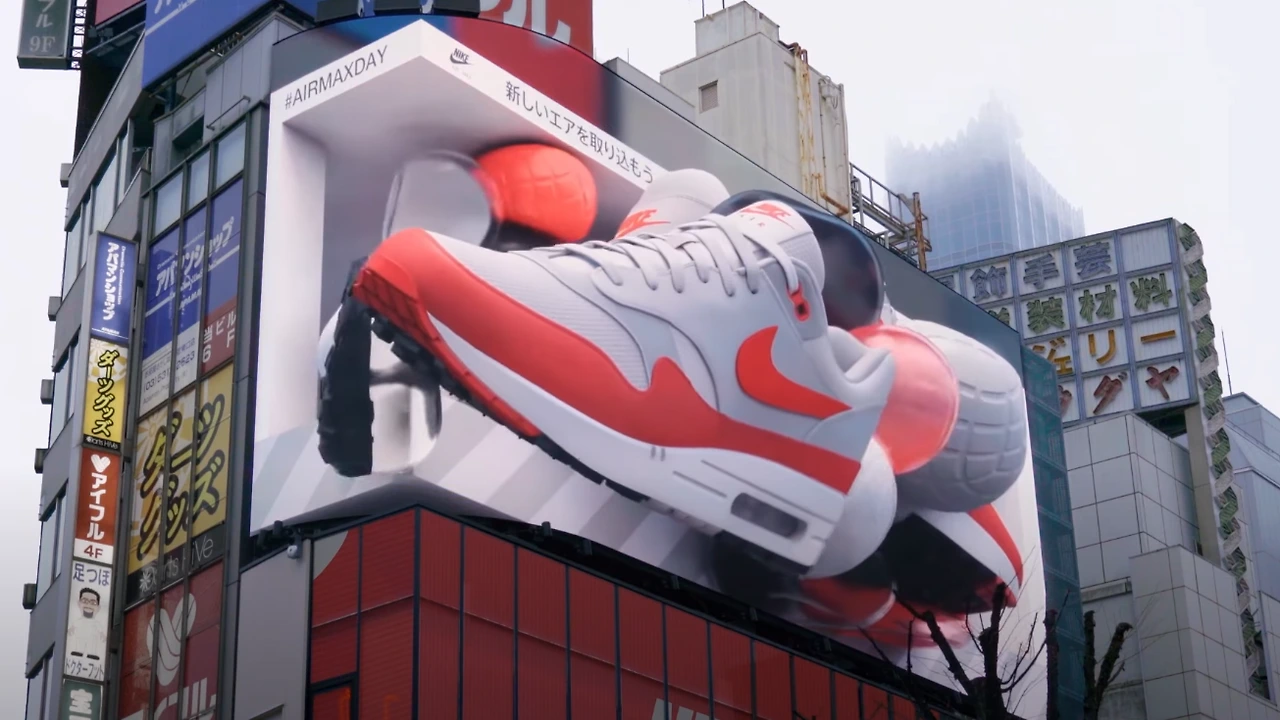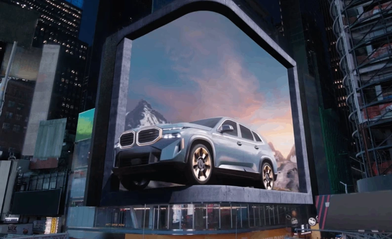 3D 옥외 광고는 전통적인 광고판에서 흔히 볼 수 있던 평평한 2D 광고판을 뛰어넘은, 엄청난 규모감을 자랑하는 기술적으로 혁신적인 광고 형태이다. 2개의 초대형 스크린을 연결한 형태로 모서리 위치에서 바라보면 화면 속 이미지가 마치 화면 바깥으로 튀어나온 것 같이 입체적으로 보이는 착시를 일으키게 된다.
