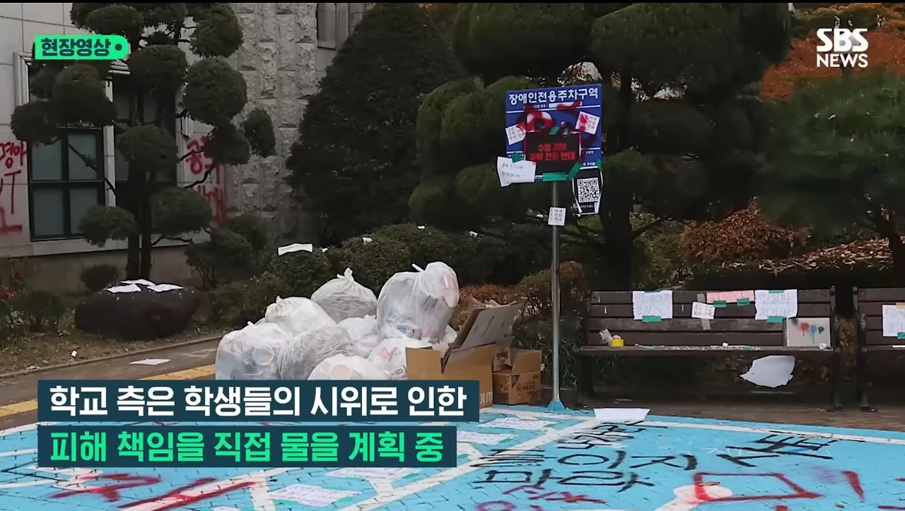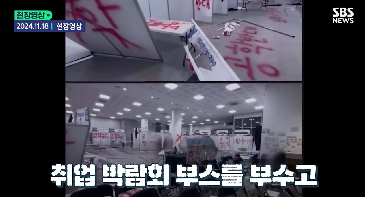 음식물을 투척하거나 취업 박람회와 졸업 연주회 장소를 파손해 학내 행사가 중단됨