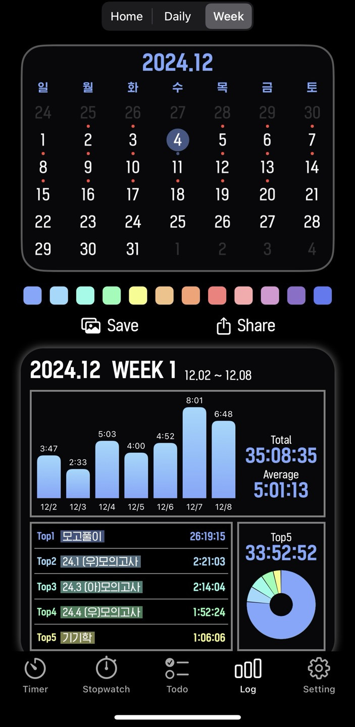 (나의 경우: 어려워하는 교시 : 자신있는 교시 = 3 : 1 비율로 분배)