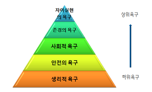 미국의 심리학자 에이브러햄 매슬로이가 발표한 이론입니다. 인간은 하위 단계의 욕구를 충족했을 때 다음 욕구의 충족도 바라게 되며 궁극적으로 자아실현의 욕구를 이루고자 한다는 것입니다.