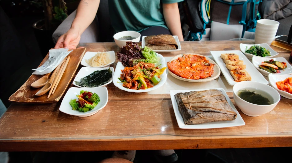 버스정류장에 도착해서도 1시간을 기다려 버스를 탔다. 점심은 우리가 부산에서 가장 좋아하는 연잎밥 집에서 먹기로 했다. 밀고기와 나물반찬이 맛있는곳. 다시 와도 여전히 맛있었다.