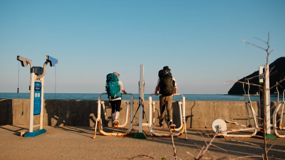 우리가 걷는 길에는 갈맷길이라는 표지판이 있었지만 사람은 거의 없었다. 길가에는 따뜻해진 기운에 갓 피어난 꽃들이 줄지어 있고, 땅에는 부지런한 개미들이 집을 짓고 있었다. 구석구석 우거진 수풀에서는 다양한 새소리가 들렸다. 운 좋게 컨테이너를 선적하는 물류터미널 근처에 편의점이 있었다. 거기서 아침에 먹을 과일과 기운을 충전해줄 시원한 음료를 한 병씩 샀다.