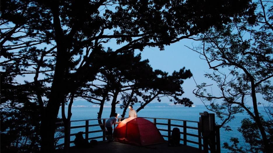 숲을 등지고 바다를 마주해 있어서 그런지 공기가 쾌청하여 잠이 오지 않았다. 공기가 상쾌한 것도 문제가 될 수 있구나. 눈을 뜨고 침낭 속에 가만히 누워 있었다. 온갖 소리가 귀에 들려왔다. 파도가 끊임없이 바위에 부딪쳐 부서지는 소리, 도시에서는 들을 수 없던 특이한 풀벌레 소리. 멀리 고라니는 왜 갑자기 한 번씩 우는 것일까. 우리 들으라고 하는 것일까? 바깥 풍경을 끝없이 머릿속에 그리게 되어 텐트 밖으로 한 번 나가보고 싶었다. 하지만 그가 너무 곤히 자고 있으니 가만히 상상할 밖에. 그렇게 아침이 왔다.