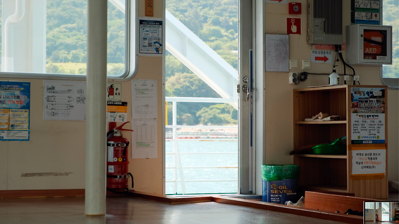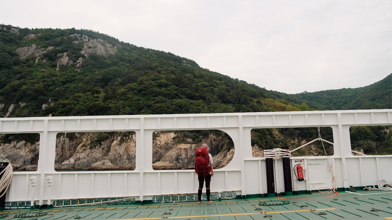 금오도로 향하는 배에 올랐다. 섬에서 또 다른 섬으로 이동한다. 우리는 3박 4일간의 여수 섬 여행으로 개도에서 하룻밤을 보내고, 두 번째 여행지인 금오도로 향하고 있다. 개도에서 금오도로 바로 이동하는 사람은 많지 않아 배는 텅텅 비어 있었다.