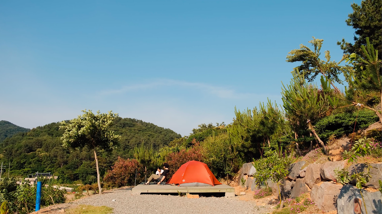비렁길부터 시작해서, 지도에 없는 샛길로 언덕을 넘고, 마을을 가로질러 도착한 캠핑장이라 그런지 마치 집에 도착한 것처럼 마음이 편안해졌다. 우리는 천천히 짐을 풀고 허기진 배부터 채우기로 했다. 이틀째 가방에 넣고 다닌 짜장라면을 끓였다. 캠핑에서 요리를 그다지 해 먹지 않는 우리라서, 짜장라면을 끓이는 일도 굉장히 큰 요리를 해 먹는 것처럼 특별한 기분이 들었다. 백패킹은 가볍고 단순하게 하자는 생각으로 대부분 비화식에 간단한 음식만 먹으며 지내는데, 가끔은 이렇게 요리를 해 먹는 것도 재미있단 생각이 들었다. 밖에서 음식을 먹는 일은 매번 새롭고 기분이 환기되는 시간이다.