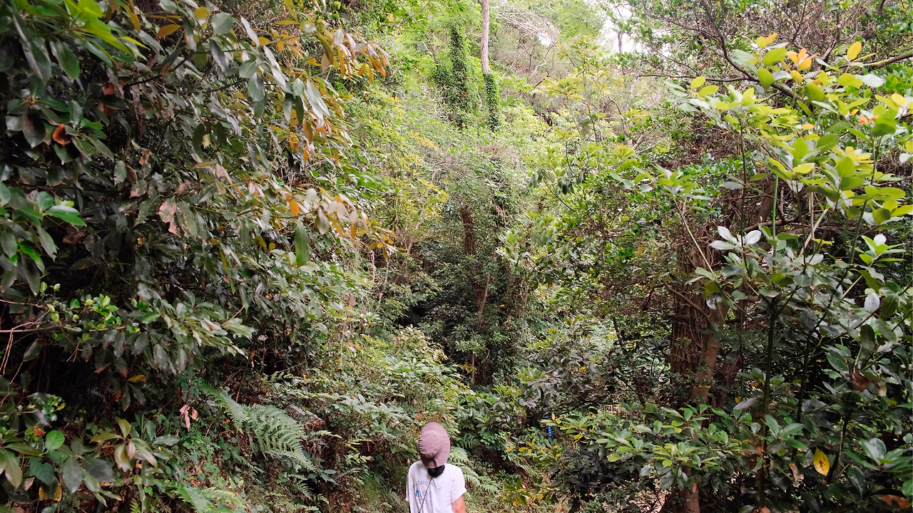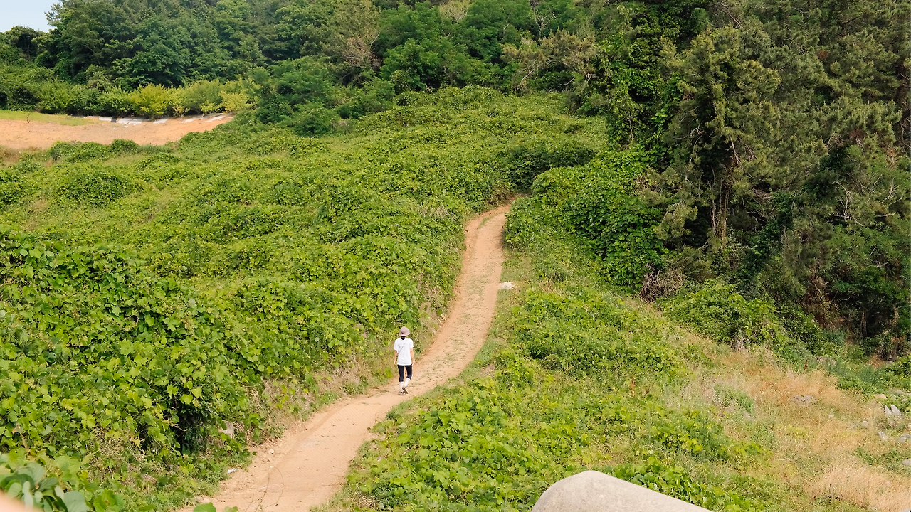 붐비는 바닷가를 등지고 산길로 들어섰다. 공룡발자국 화석을 볼 수 있다는 해안 트레킹 코스가 있었다. 그곳에는 사람이 많지 않았다. 이제야 마음이 편안해졌다. 자연은 모두의 것이니까 사람이 붐비는 것에 불만을 가질 수는 없다고 생각한다. 하지만 여행을 오는 이유 중에는 복잡한 도시를 떠나 아름다운 자연 앞에서 조용한 시간을 보내는 것도 포함되기 때문에, 자그마한 섬 여행에서 예기치 않게 마주친 북적이는 거리는 우리를 당황스럽게 했다.