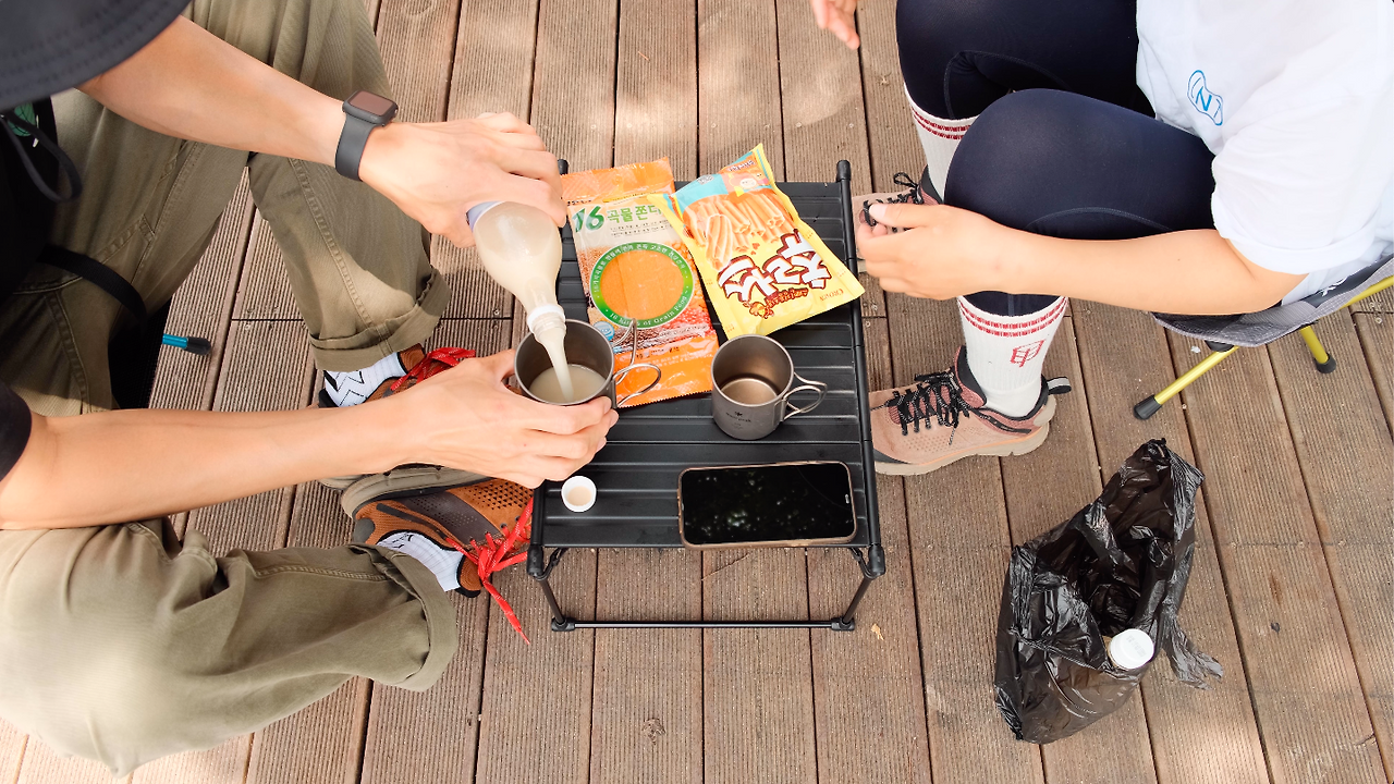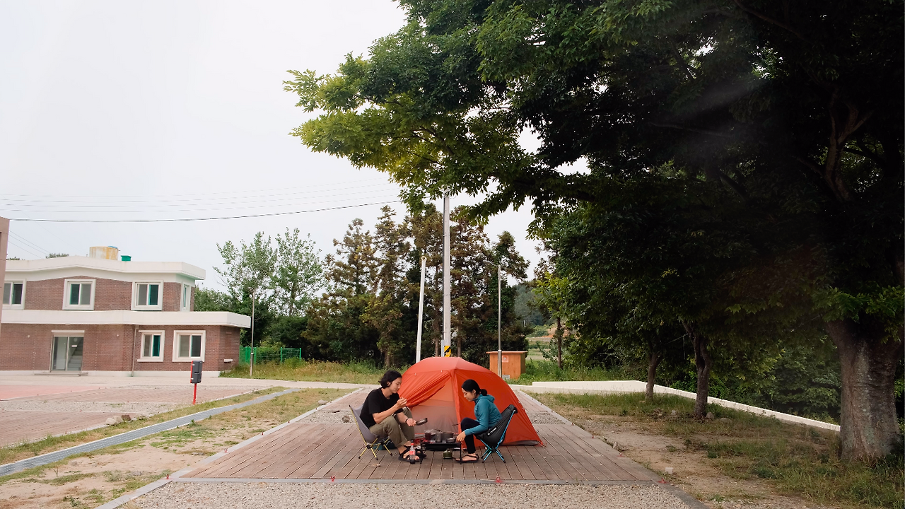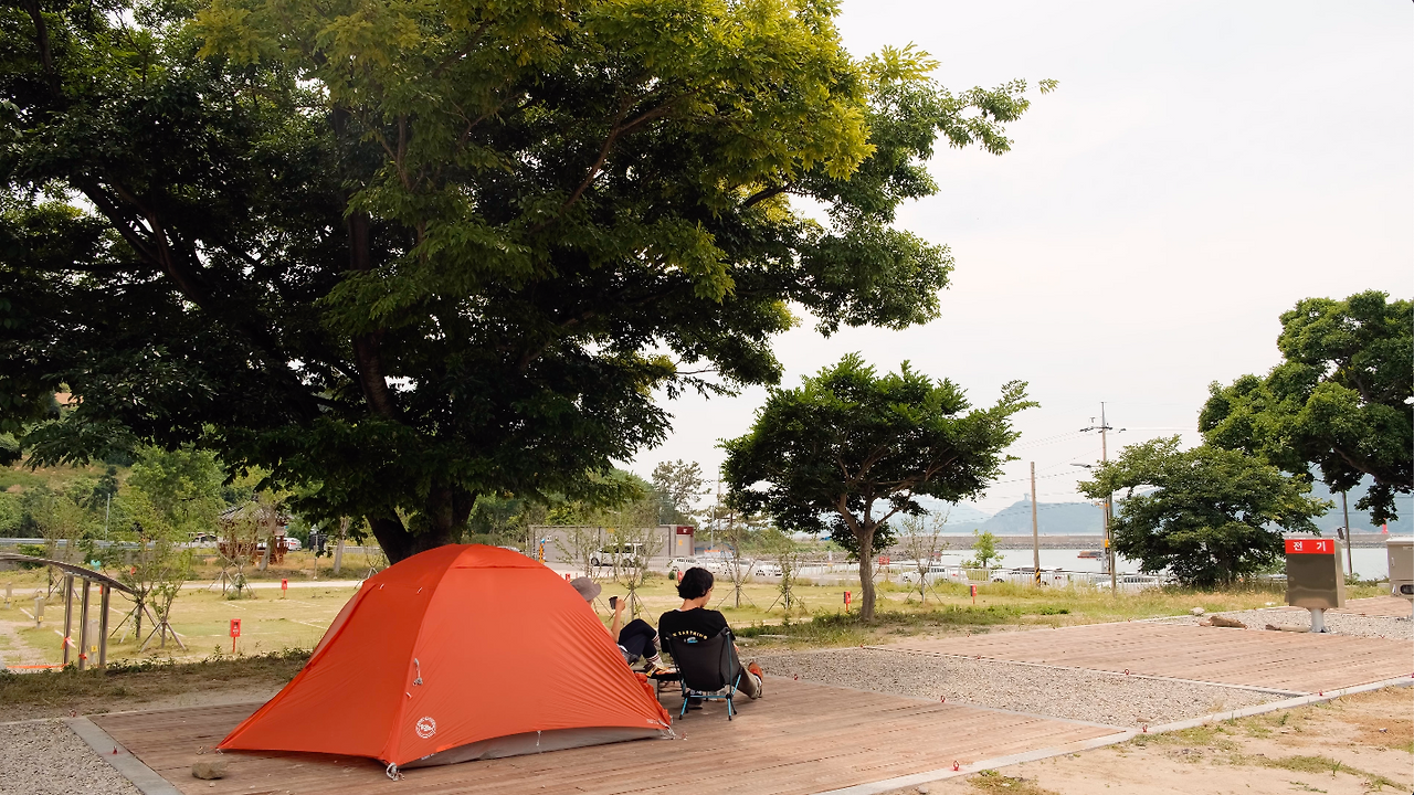 낭도에 오는 다른 백패커들은 낭도 상산 쪽에서 1박을 하기도 하지만, 우리는 다음날 아침 7시 낭도항에서 배를 타야 해서 항구가 가까운 낭도 캠핑장에 자리를 잡았다. 사람으로 북적이는 거리와 달리 캠핑장에는 자리가 많이 남아 있었다. 자그마한 우리의 텐트에 비해 과하게 넓은 사이트에 넉넉히 자리를 폈다. 우리는 막걸리의 차가운 기운이 사라지기 전에 먼저 막걸리 맛부터 보기로 했다. 그는 이번 여행에서 먹어본 막걸리 중 이곳 막걸리가 가장 마음에 든다고 했다. 덕분에 막걸리 두 병을 금방 비웠다.