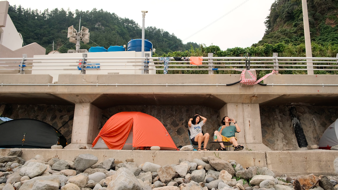 사실 내수전은 생각만큼 좋진 않았다. 누가 박지 앞 바위 더미에 음식물을 버려둔 게 그대로 있었고, 냄새도 났다. 벌레도 돌아다녔다. 하지만 우리는 적당한 장소에 자리를 펴고 누워 잘 수 있는 것에도 만족하는 사람들이다. 내수전은 완벽하진 않았지만 충분했다.