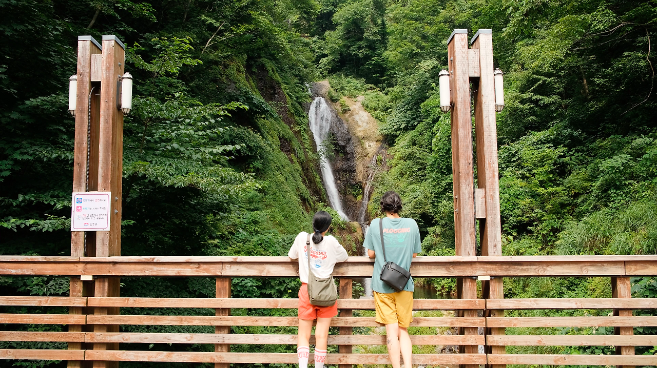 매표소에서 봉래폭포까지는 생각보다 꽤 거리가 있었다. 곧게 뻗은 나무로 둘러싸인 길은 천천히 산책하듯 걸을 수 있는 곳이었다. 길 옆으로는 계곡물이 흐르고 숲에서는 시원한 바람이 불어왔다. 언제 폭포가 나타날까 기대되는 마음으로 한 걸음 한 걸음 디뎠다.