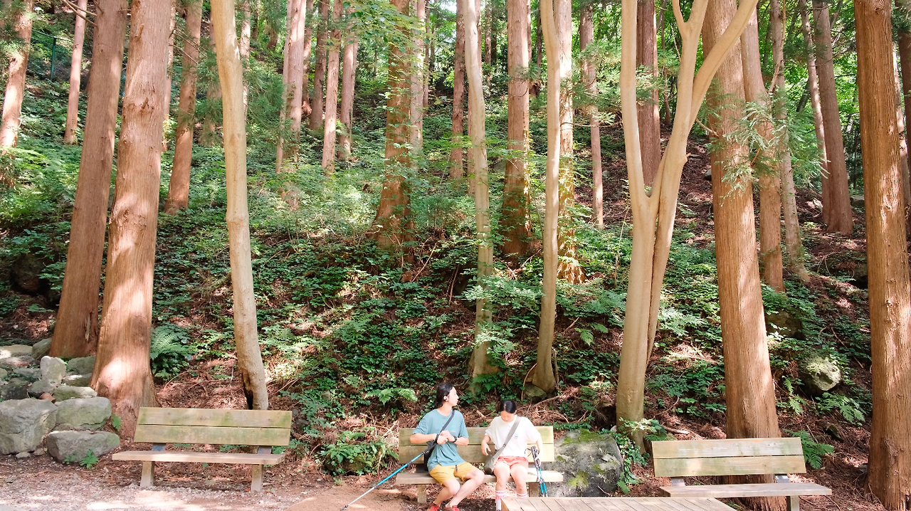 봉래폭포는 그렇게 크지 않은 규모였다. 3단으로 나누어져 층층이 떨어지는 폭포가 시원했다. 우리는 폭포 소리를 들으며 벤치에 앉아 잠시 휴식하고 걸어온 길로 되돌아 나왔다.