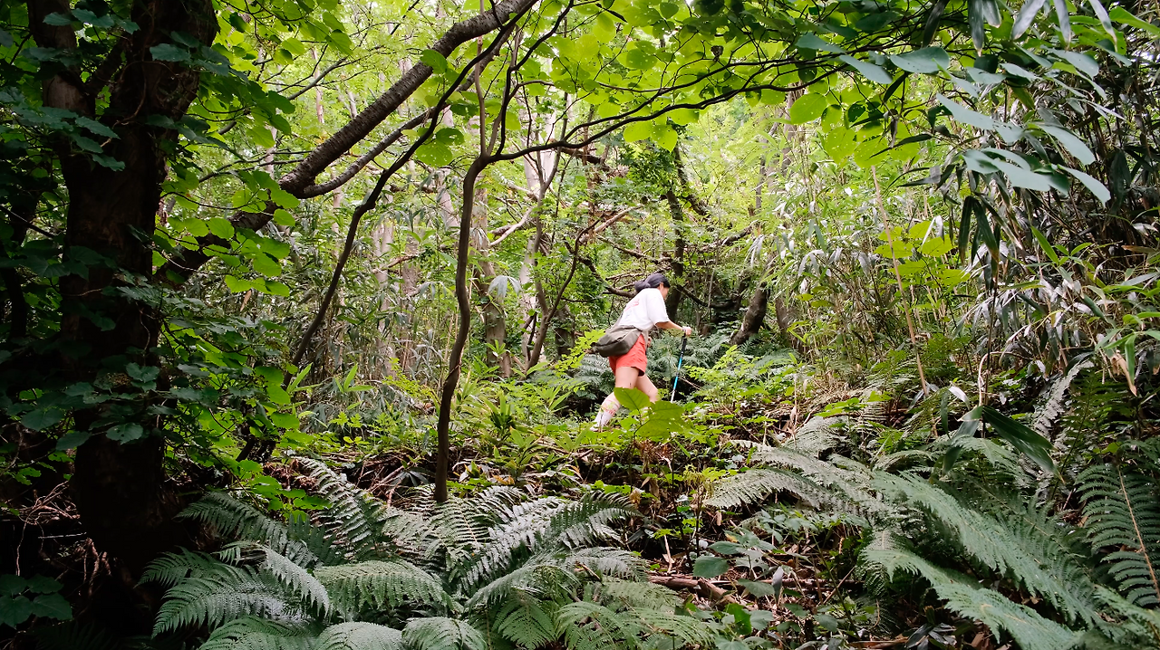 우리는 성인봉 원시림이 보고 싶어 이 산을 오르기로 했다. 울릉도 성인봉과 같은 원시림은 국내에 얼마 남아있지 않다고 한다. 대부분의 산이 녹화사업을 거치며 인공적으로 숲을 조성했다. 하지만 울릉도 성인봉의 숲은 자연 상태 그대로의 모습을 유지하고 있다. 오르면서 보이는 주변의 풍경이 낯설었다. 구불구불 멋대로 자란 나무와 땅을 가득 메우고 있는 고사리, 나무 위로 타고 오른 빛나는 이끼가 만든 신비로운 원시림의 풍경에 압도되어 우리의 걸음은 자꾸만 느려졌다.