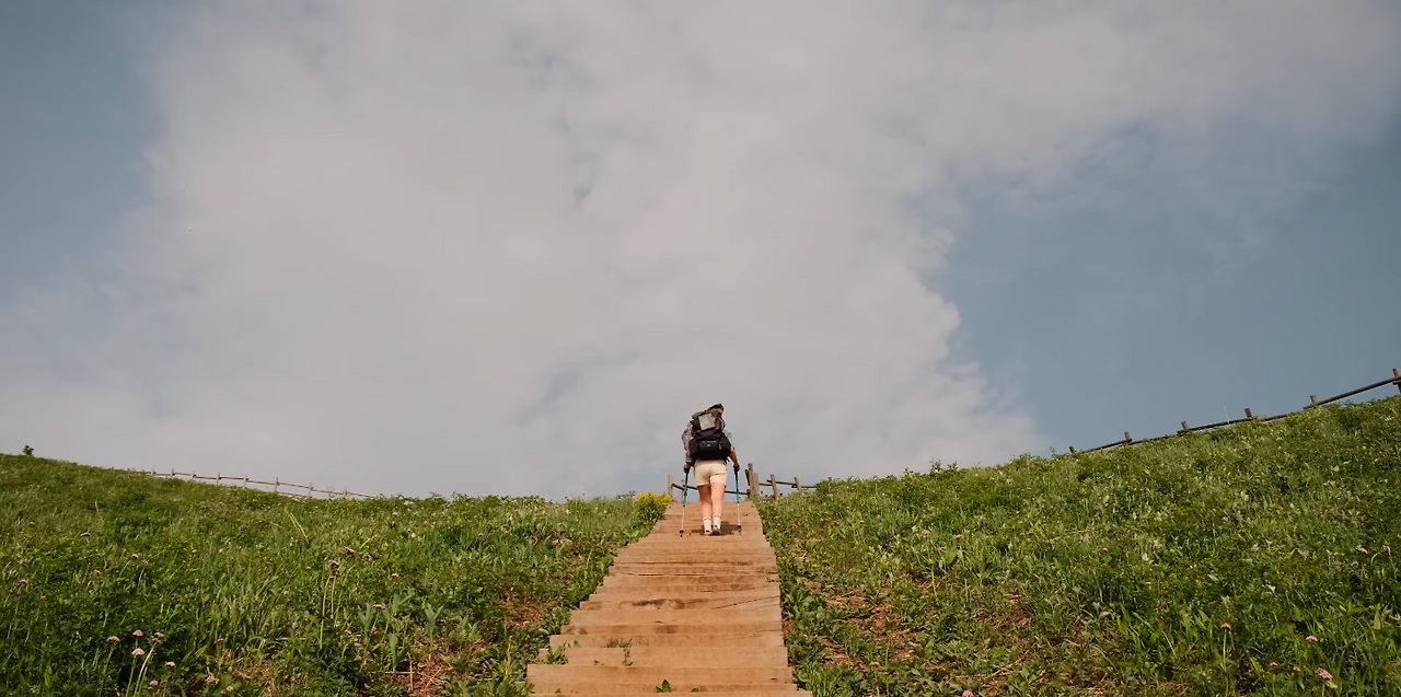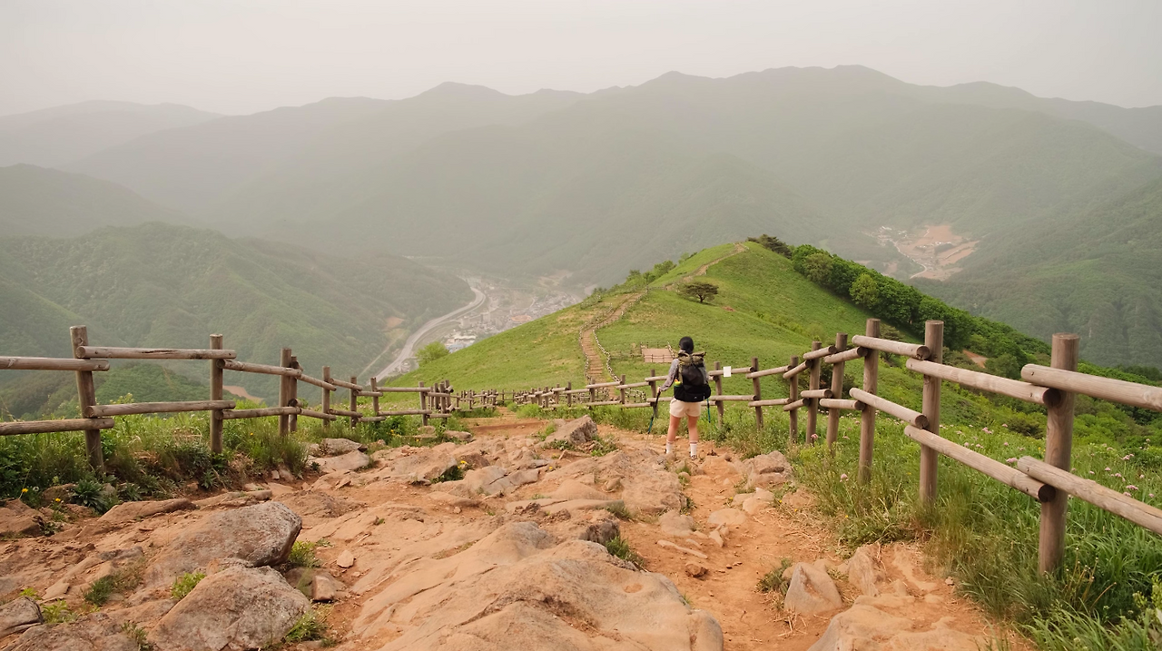 우리는 왔던 길을 다시 걷기 시작했다. 곱게 핀 들풀이 우리의 시선을 잡아 걸음을 느려지게 했다. 다음날은 평일이라 그런지 민둥산이 텅 비었다. 사람 없는 산의 모습처럼 고요한 것이 있을까. 터벅터벅 산 정상을 걸어 내려오며 사람 없는 민둥산 본연의 모습을 보는 호사를 누렸다.