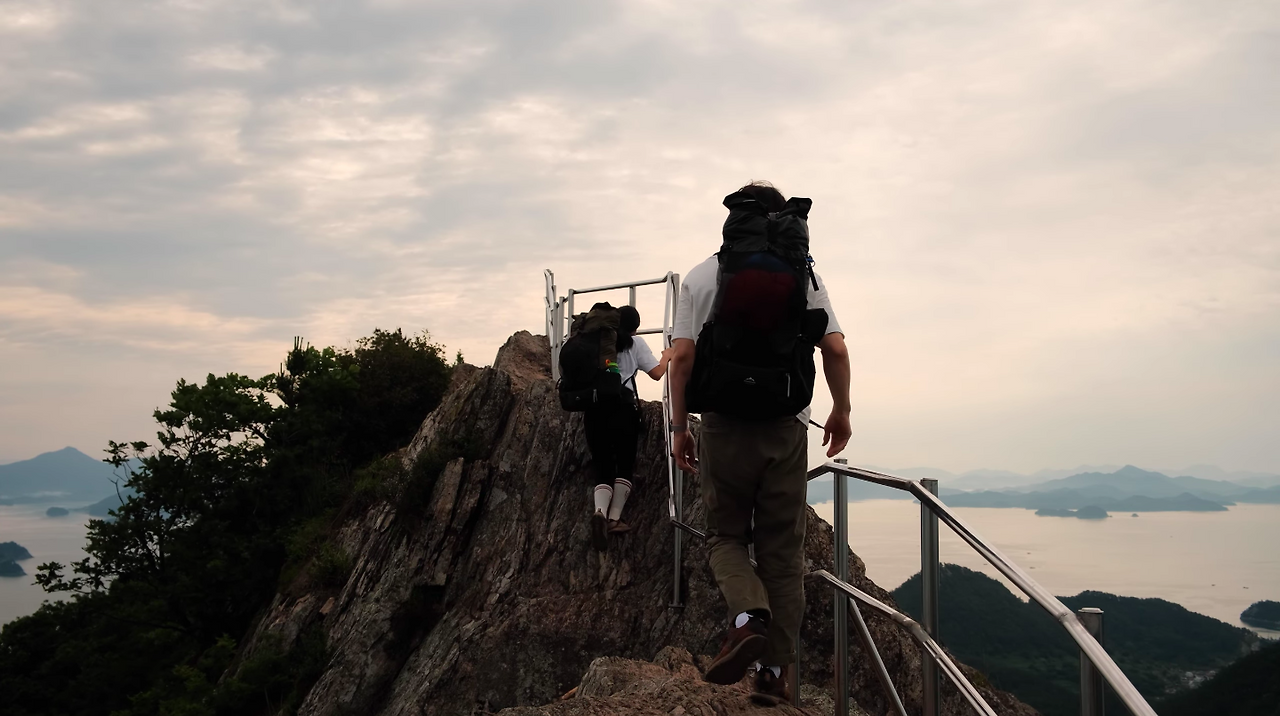 언제나처럼 새가 노랫소리로 아침이 밝았음을 알렸다. 우리는 어둠이 막 물러나기 시작한 하늘 아래로 나섰다. 짐을 정리하고 다시 등산을 이어갔다. 사량도 종주길은 생각보다 많이 험한 길이었다. 온통 바위로 둘러싸여 낭떠러지로 이어진 가파른 길이 많았다. 박배낭을 메고 올라본 산 중에서는 가장 험한 산이었다. 하지만 재미있었다. 등산을 하는 재미는 울퉁불퉁한 길을 걷는 걸음걸음마다 묻어난다. 우리는 좌우 낭떠러지를 따라 펼쳐진 바다를 둘러보며 바위산을 올랐다.