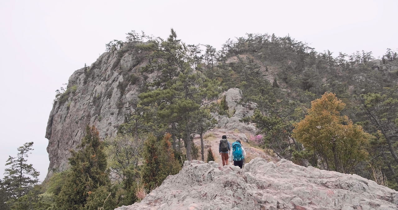 바위로만 이루어진 산은 처음 올라보았다. 등산화가 바위에 달라붙는 느낌이 즐거웠다. 비탈진 바위면을 오를 때는 겁도 났지만 걸음걸음에 집중하며 발을 내딛는 재미가 있었다. 등산화를 신고 걸을 때는 꾹 꾹 무게를 실어 밟으면 생각보다 발이 미끄럽지 않다. 바스락거리는 발소리마저 듣기 좋았다.
