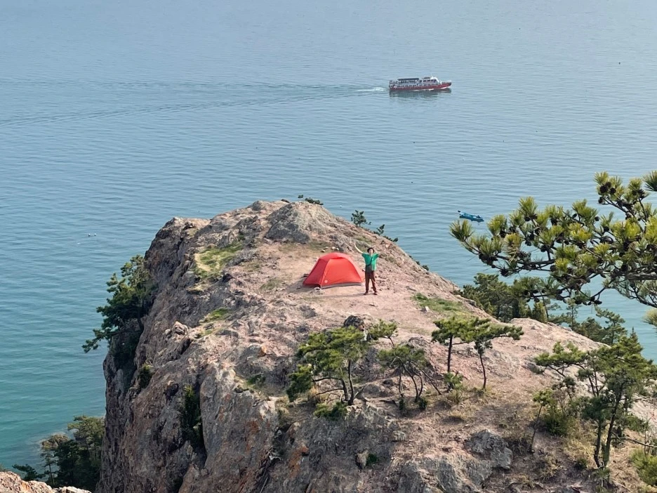 수많은 백패커들 중 오늘 이곳에서 자겠다고 생각한 사람이 어떻게 우리 밖에 없었을까. 오는 길은 고됐지만 도착해서는 지금까지의 백패킹 중 가장 여유로운 시간을 가졌다. 이 돌산 중에 우리 둘만 있다는 것이 신기했다. 산은 예약도 할 수 없고 먼저 찜할 수도 없는 것인데, 박지에 벌써 텐트가 있으면 어쩌나 오는 길에 계속 걱정했었다. 이럴 줄 알았으면 걱정을 좀 더 아껴 둘걸 그랬다. 선유봉에는 우리 둘과 새들과 염소 밖에는 없었다. 참 호사스러운 캠핑이다.