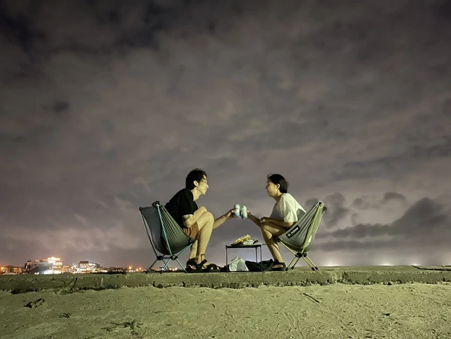 금세 하늘은 노을이 들었고 30분 후에는 바다에서 나와야 한다는 방송이 나왔다. 샤워실이 폐쇄라서 그와 나는 근처 화장실에서 물병으로 연거푸 물을 끼얹으며 대충 샤워 아닌 샤워를 하고 텐트로 가서 옷을 갈아입었다. 제대로 씻지 못했는데도 개운한 기분이 들었다. 해가 지고 사람들이 돌아간 바다는 조용하게 비었다. 언제 나왔는지 저 멀리 오징어배들 불빛만 도시의 야경을 대신해서 빛나고 있었다. 우리는 근처 편의점에서 산 비건 육포와 무알콜 맥주를 들고 바닷가로 다시 나갔다. 테이블과 의자를 펼치고 파도소리를 들으며 앉아 있었다. 그의 큰 발 옆으로 엄지손톱만 한 게가 느릿느릿 기어갔다. 생명으로 가득한 바다가 옆에 있는 것만으로 이렇게 좋을 수 있구나. 바다는 참 좋은 것이구나.