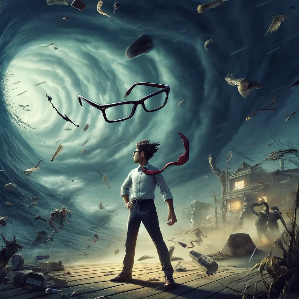 "왜 굳이 태풍이 몰아치는 날에 걸으러 나선 걸까?" 스스로에게 후회가 밀려왔습니다. 집으로 돌아가 다른 안경을 가져올까, 만약 누군가 안경을 밟는다면 어떡하나, 찾는데 최소한 1시간은 걸릴 텐데, 이러다 몸살이라도 나면 어떡하지? 머릿속은 수만 가지의 고민으로 가득 찼습니다.