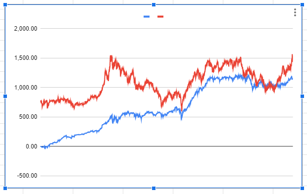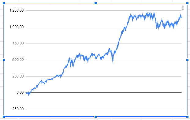 데이터를 찾아보니 2020년 11월 18일 누적수익 1000을 돌파 후, 계속 횡보상태다.