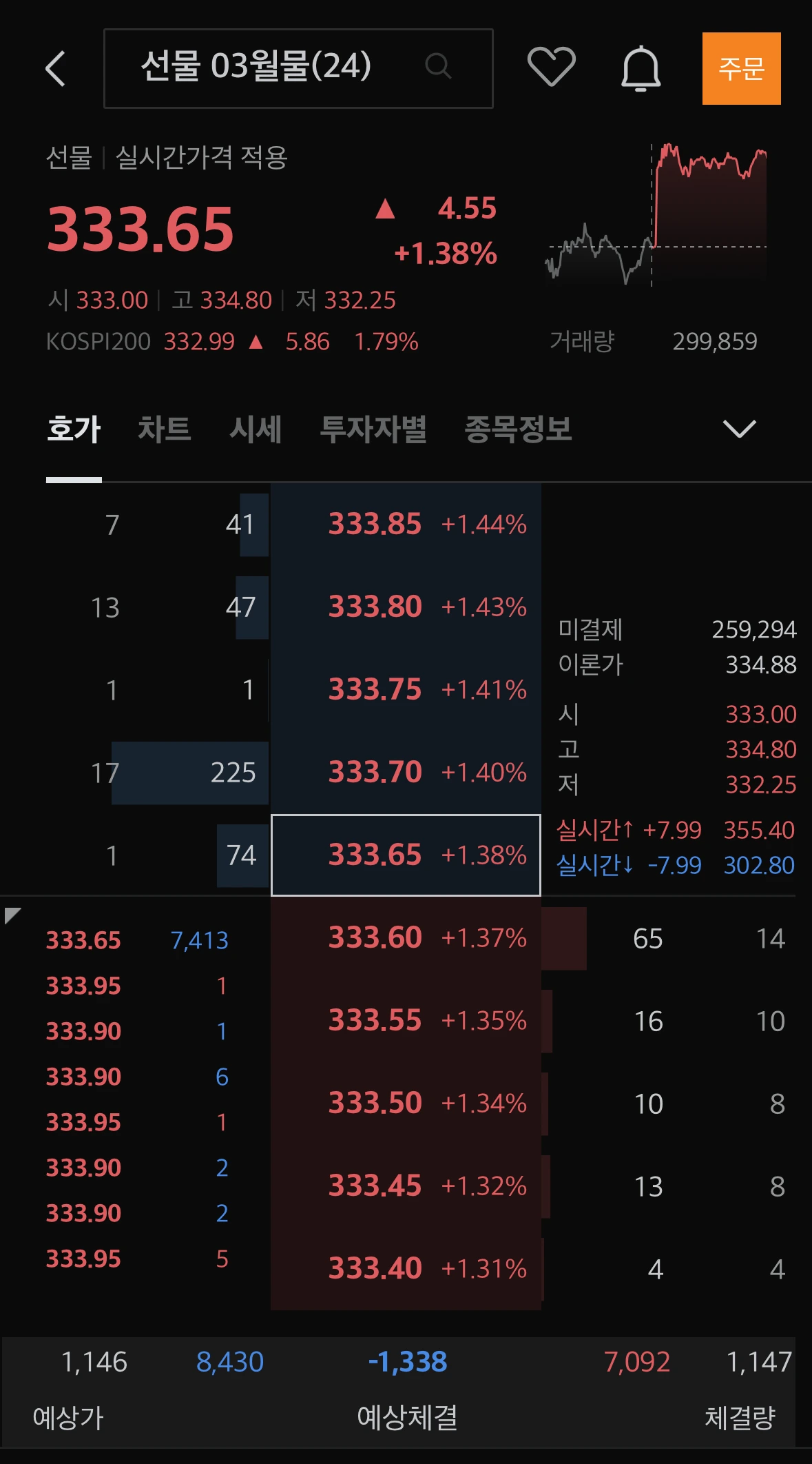 아래 그림의 선물 마감은 33.65점이다.