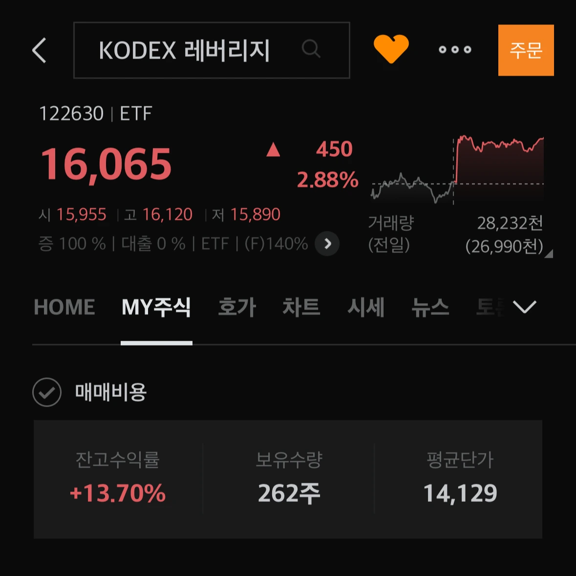 일반 상품보다 위험하다는 KODEX 레버리지로 해보자.