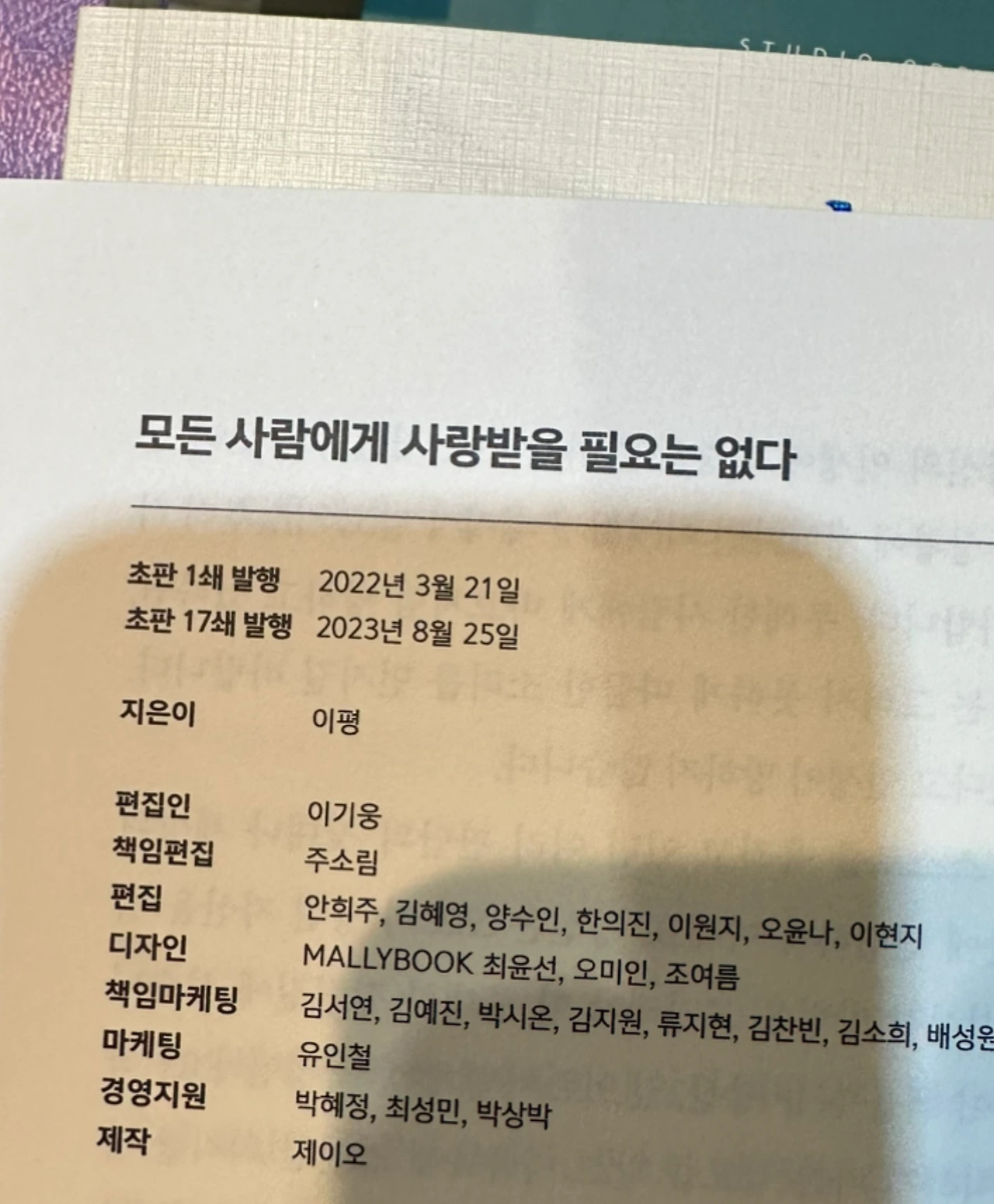 '모든 사람에게 사랑받을 필요는 없다'는 17쇄.
