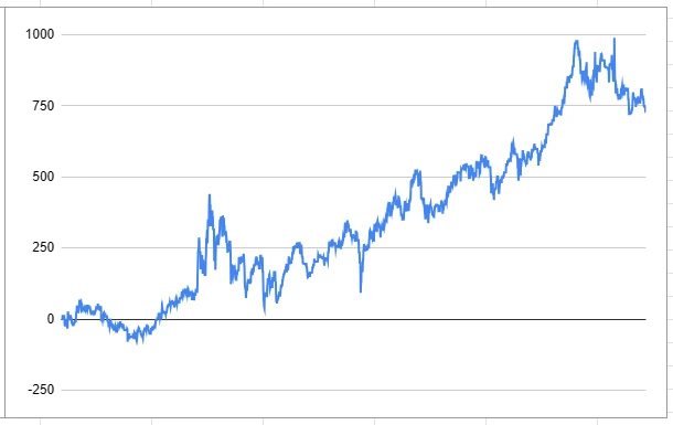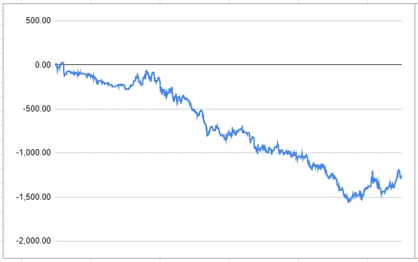 누적 결과가 좋아보이긴 하지만, 이 전략이 수익을 보장하기 힘들어 보입니다. 시장 동향에 따라 지속적으로 평가하고 전략을 조정할 필요가 있습니다. 주식 시장 투자는 인내, 경계, 그리고 필요에 따라 전략을 조정할 수 있는 열린 마음이 필요합니다.