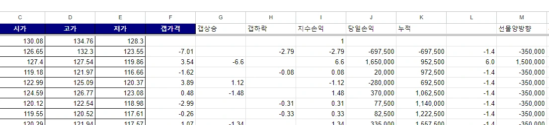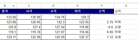 엑셀을 공부하기 전에는 수익을 잘 몰라서 일일이 차액을 입력해서 결과를 구했습니다.