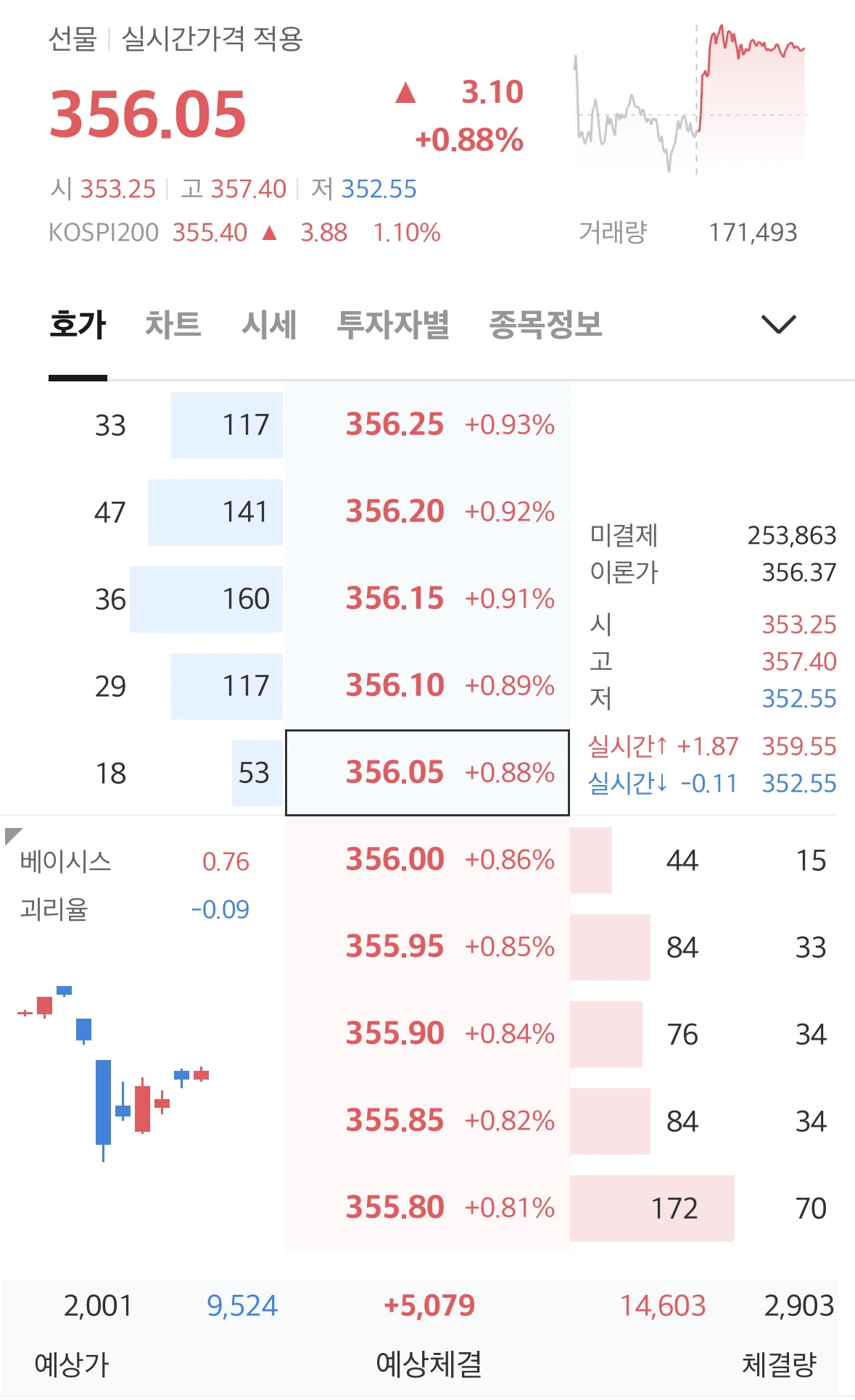 이러한 판단에 따라 4계약을 더 매수했다면, 총 50~60점의 손실이 발생하게 되고, 기존 계약 외에도 추가로 1,500만 원가량의 손실이 발생할 수 있습니다. 이로 인해 증거금 2천만 원 외에 일시적으로 사용한 계좌의 500만 원마저 손실로 이어지게 됩니다.